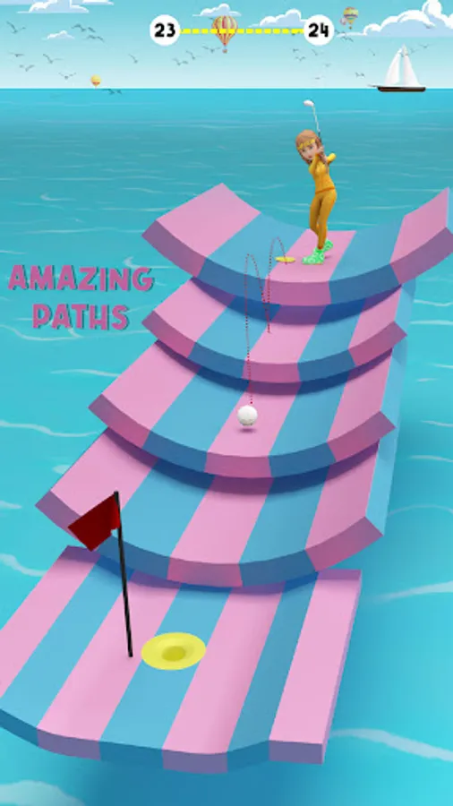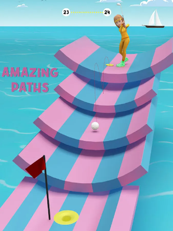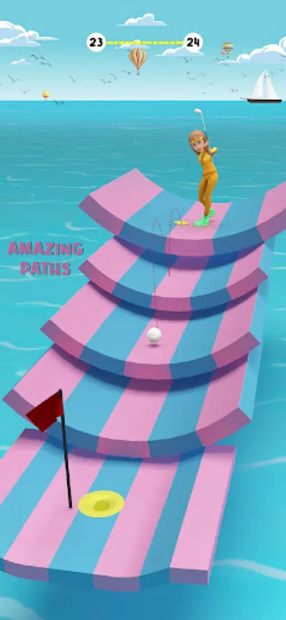 Tee off your golf ball with a beautiful golf club. As golf games level pass, the hurdles become inevitable, so upgrade your golf swing skills in hole games! Buy beautiful clubs and unlock new golf master skills. Become the golf swing star and win mini golf games.
