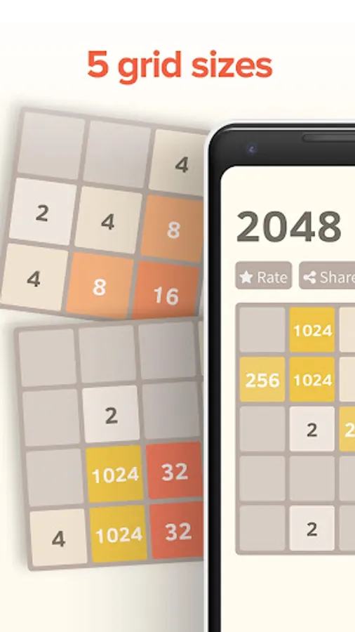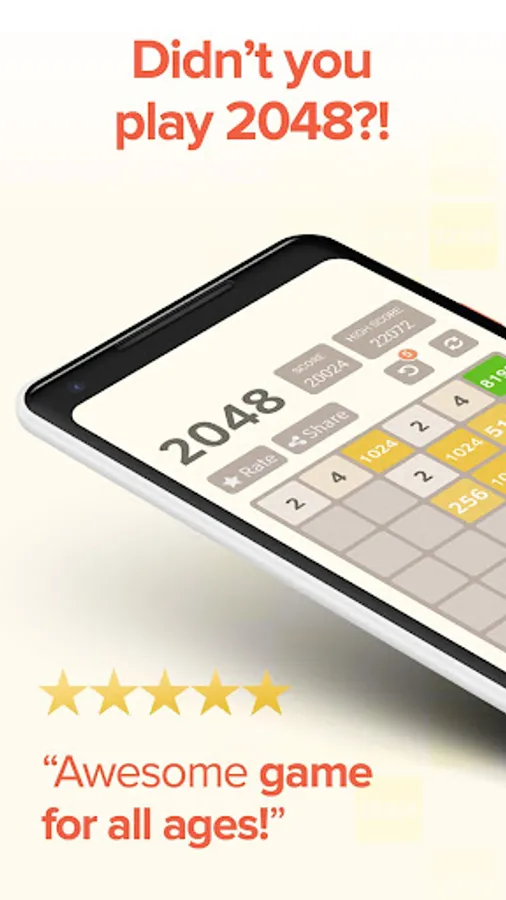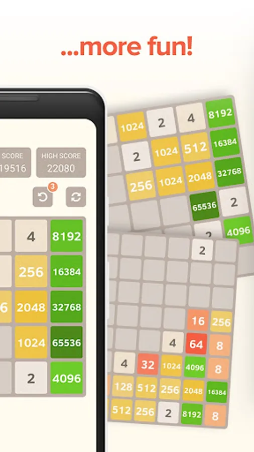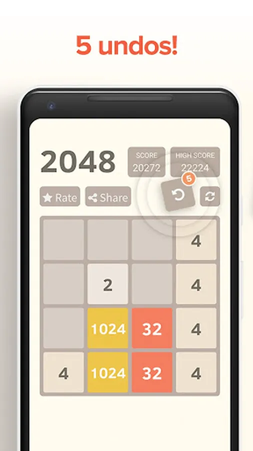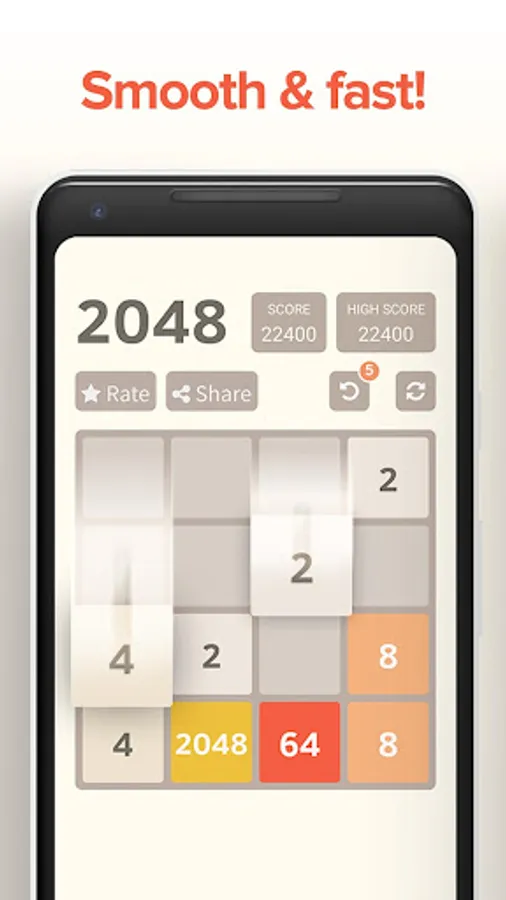 With 5 undos, 5 boards, smooth performance, low storage plus other features, this new free 2048 game brings you best experience among all 2048 number games.