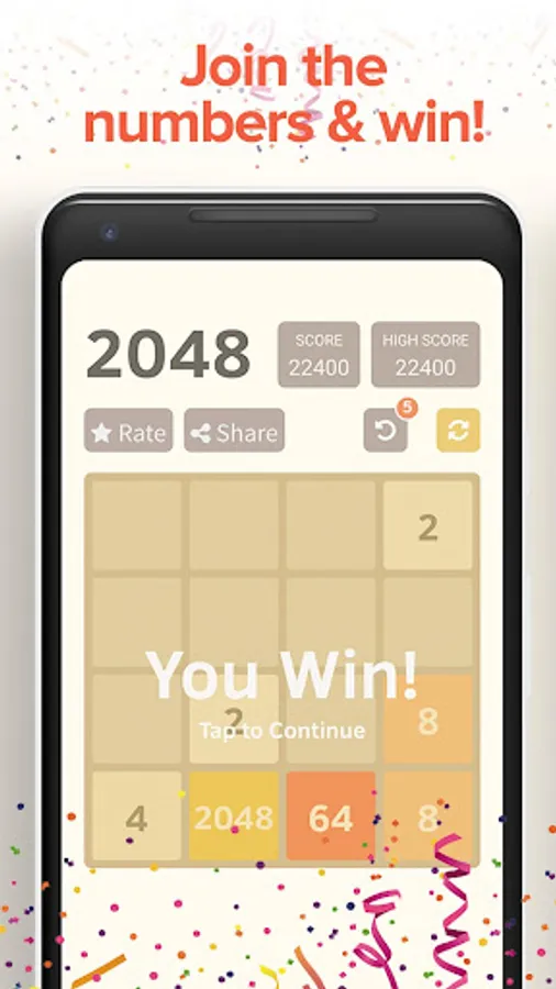 2048 is an addictive number puzzle game based on simple addition. You can enjoy all fun of number games, cool math games, logic puzzle games, brain teaser, and mind blowing in this free super numbers puzzle.