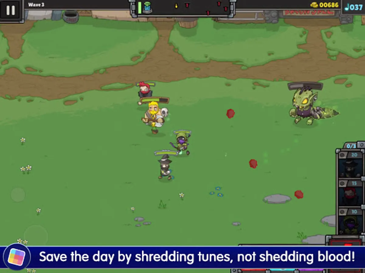 Use Brad's musical talents to summon a variety of heroes to fight by his side. Dodge and weave through enemy attacks and don't be afraid to belt out a solo to give your team an extra boost. All you have to do is keep the monsters from destroying your town's magical crystal... a job easier said than done when you see how many opponents you'll face! That's not even mentioning the terrifying bosses. Is the power of rock enough? You bet it is!