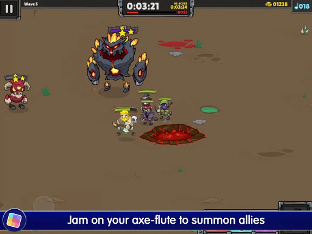 A little back-up never hurt, though. Scoop up the gold that defeated enemies drop and use it to power up Brad and his buddies. Recruit powerful new units to help fill out your band of warriors, including one that looks suspiciously like an octopus. There's only so much room on the stage, so think carefully about which allies to bring with you into battle. You'll need both brains and brawn if you want to survive to see another day!