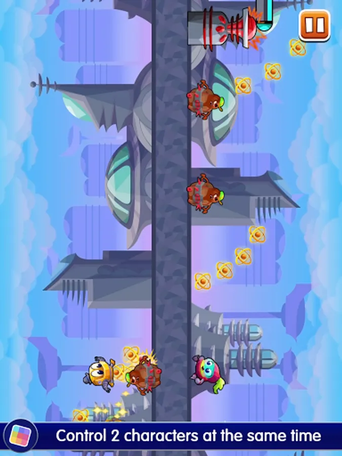 Double the Danger: Wrap your brain around controlling two characters at the same time. Try to avoid hazards and defeat the enemies that block your way!