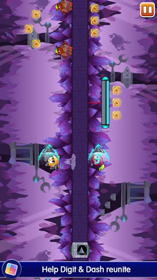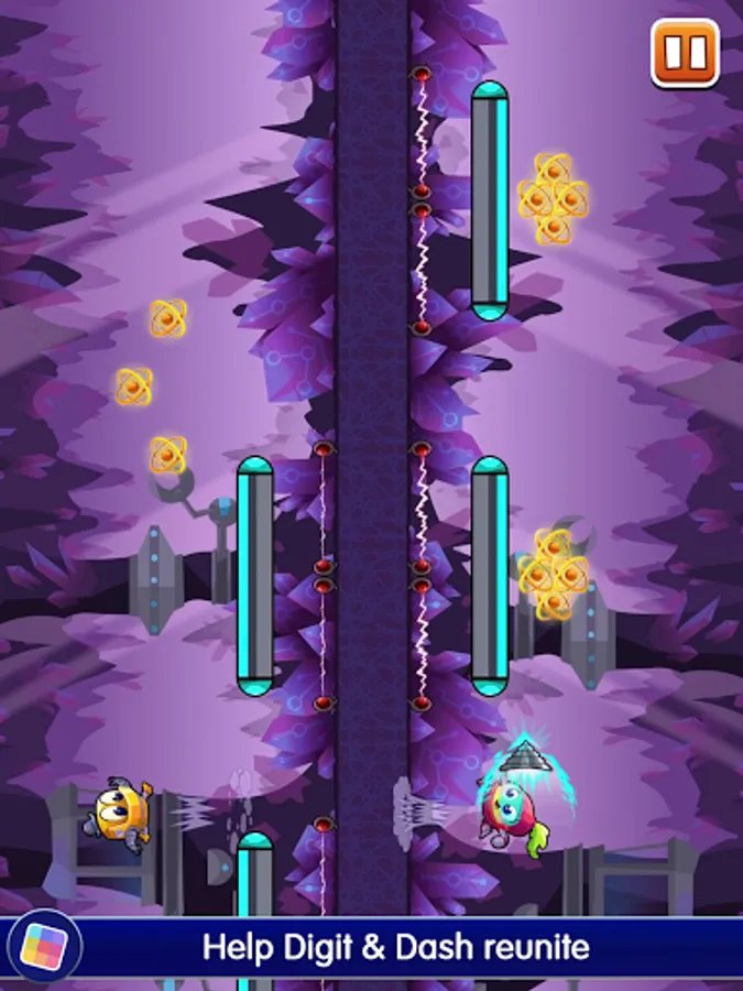 Digit and Dash may be split up, but they can still give each other a boost with some well-timed ground pounds. You'll need quick reflexes and a sharp mind to keep both of our heroes safe. Collect molecules and badges to master each stage, or just focus on reaching the end intact. Visit five different worlds, each packed with its own challenging tricks and dangers. With simple controls, Digit & Dash couldn't be easier to play. Coordinating the duo well enough to see them reunited is another matter entirely! Are you up to the task?