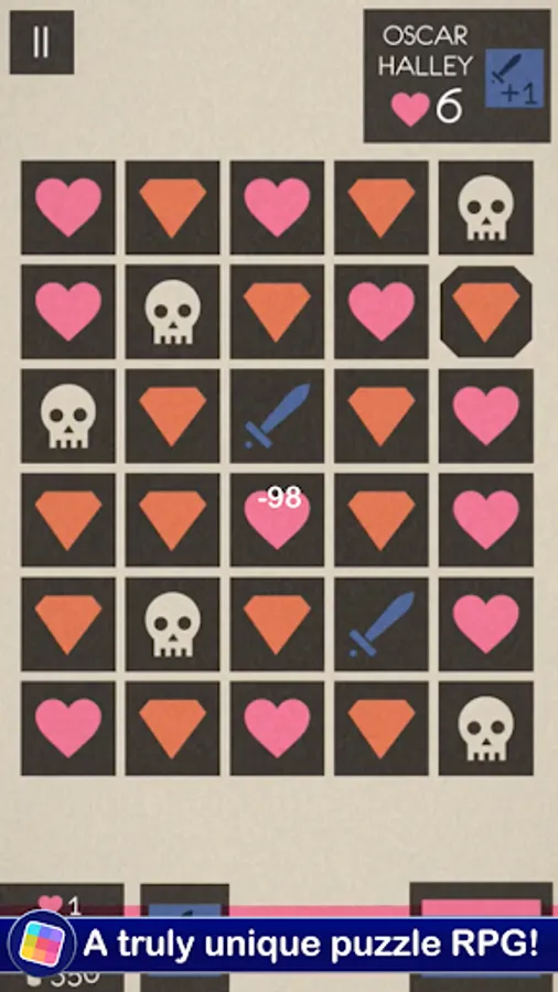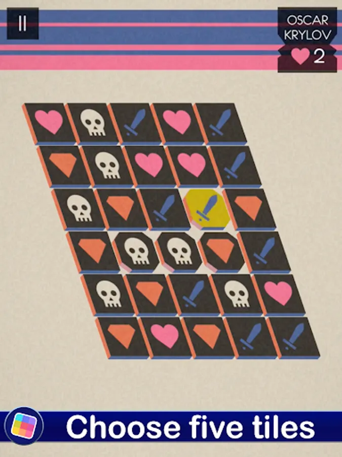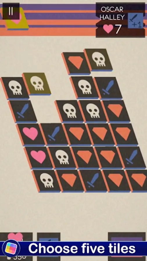 After choosing 5 adjacent tiles you only get one! Play wisely with the odds and defeat your enemies before they defeat you.