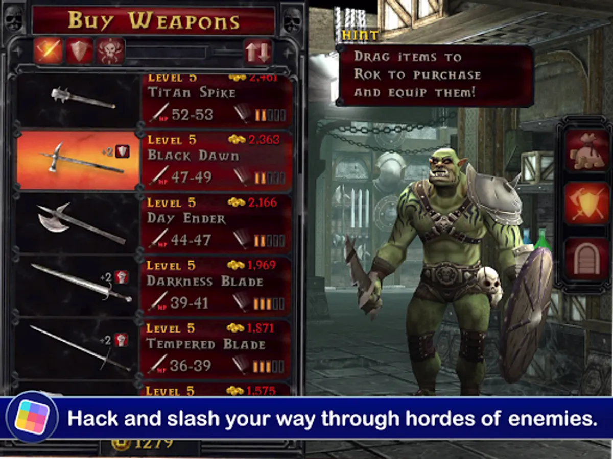 - Incredible Gear: Find or buy an assortment razor-sharp swords, bone-crushing warhammers, lethal axes, stalwart shields, and more!