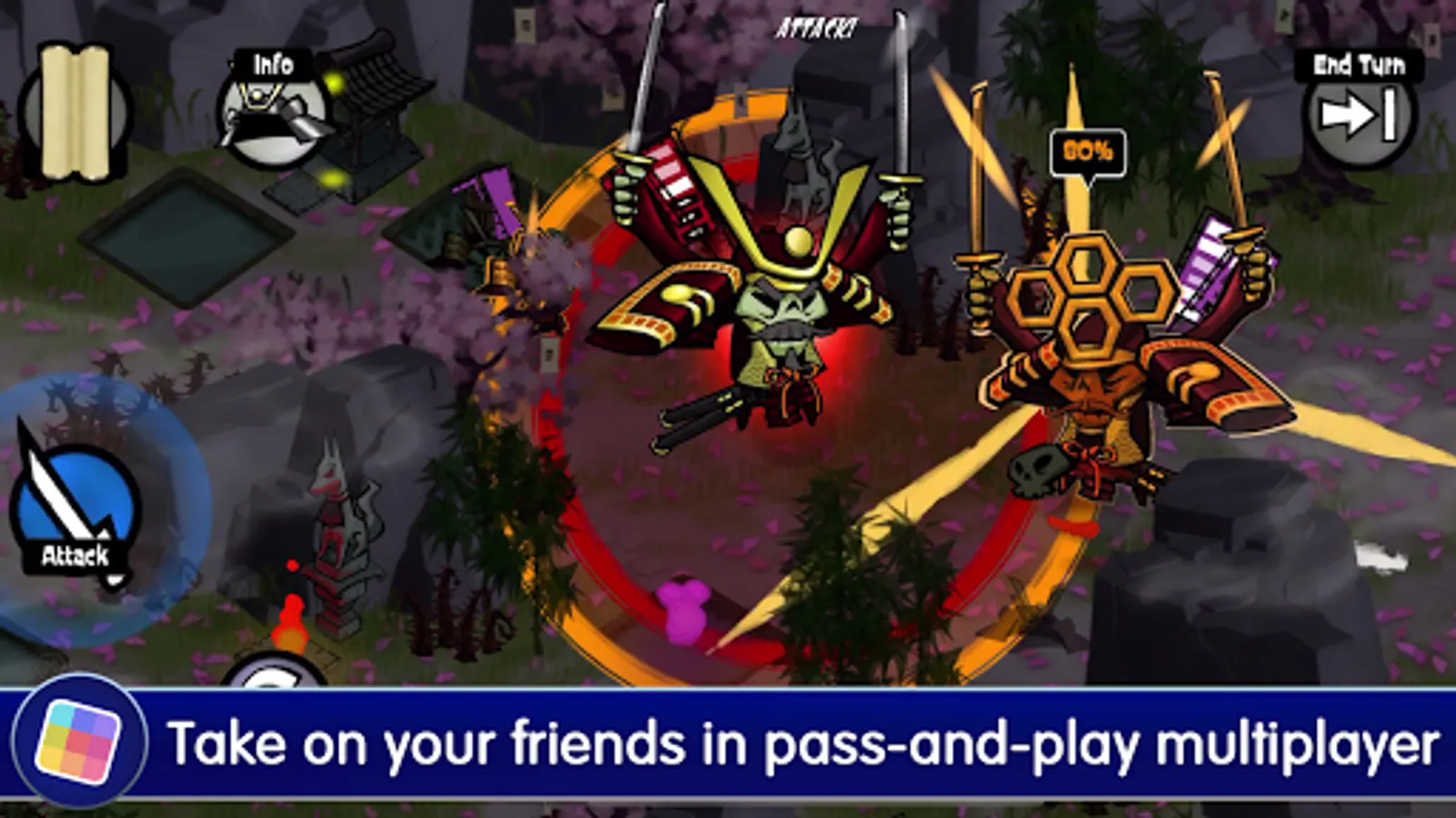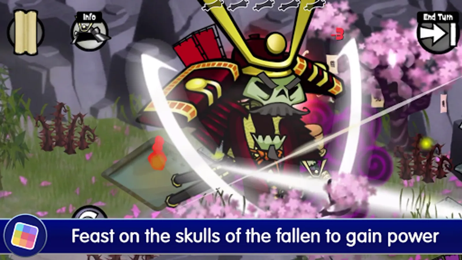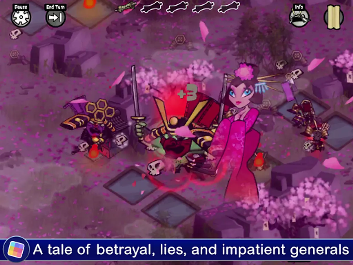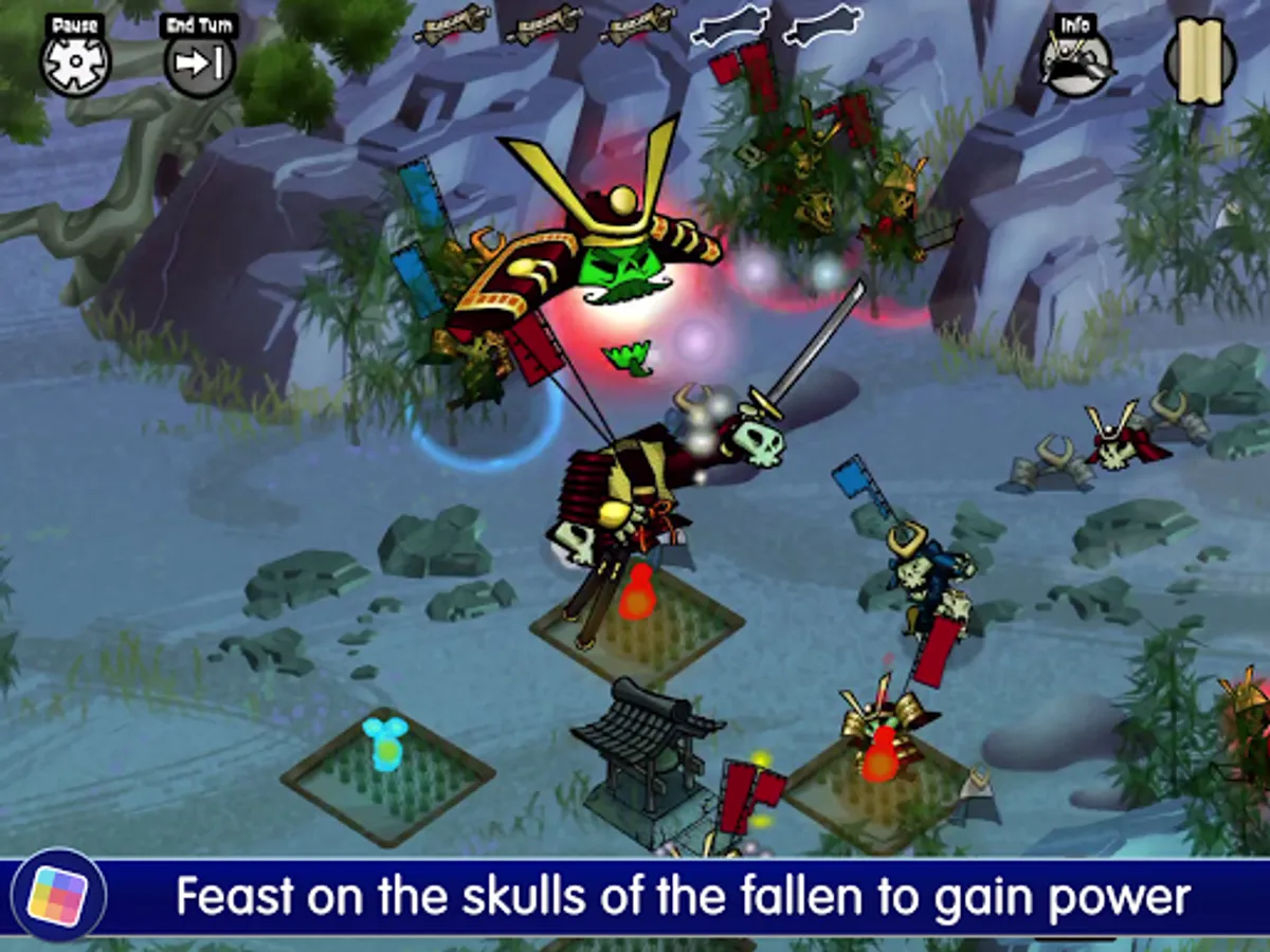 Skulls of the Shogun is a fast-paced turn-based strategy game inspired by the classics of the genre. Execute your plans in 24 epic levels filled with vicious foes who aim to put a stop to your conquest. Devour the skulls of fallen enemies to power up your units and grant them greater strength and stamina. Use all of your ghoulish powers to give you the edge against those who oppose you. Lead your forces across four different areas and do battle with the deadly Generals of the Shogun before taking the fight to the main man himself. Hop into the multiplayer mode and set your spears at your friends to see who is the ultimate undead samurai!