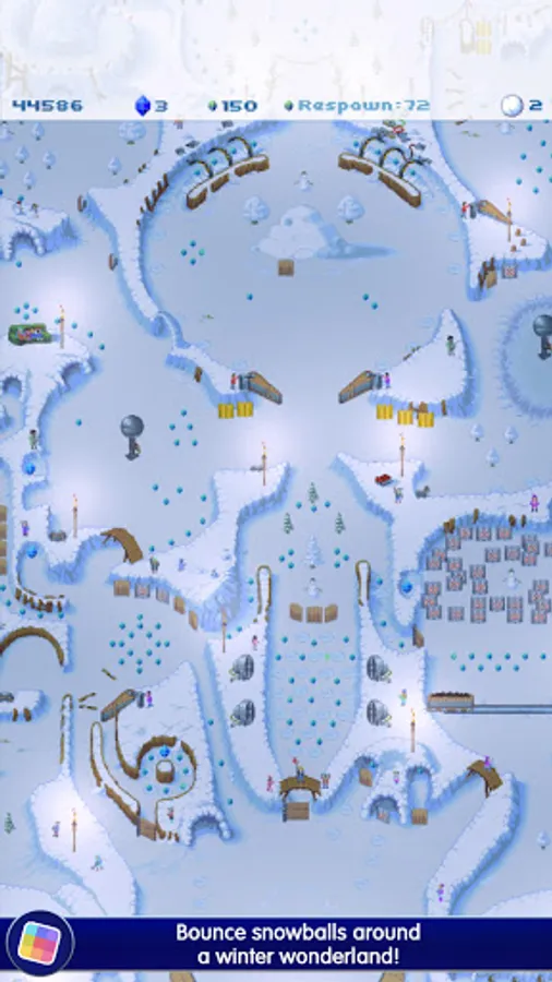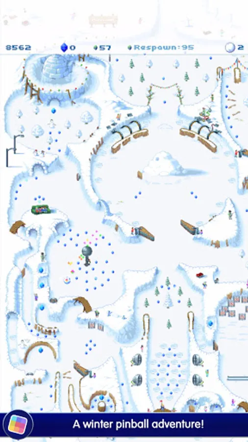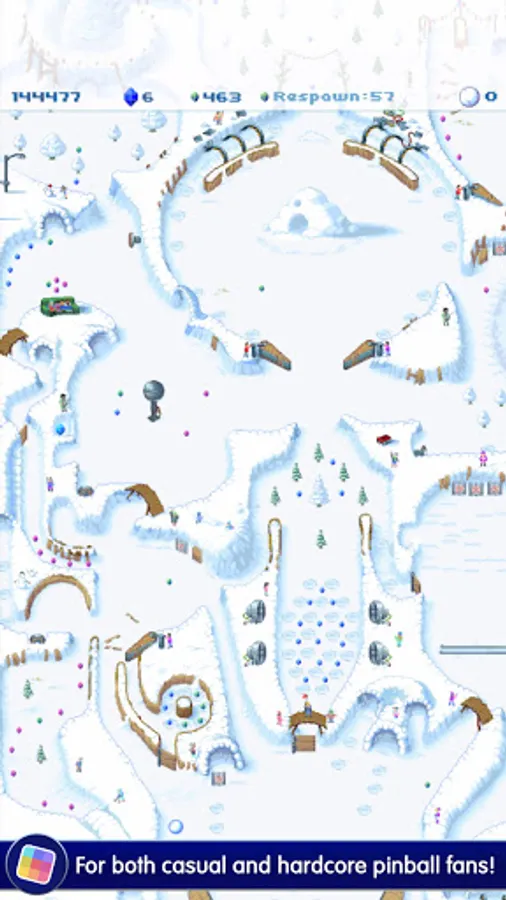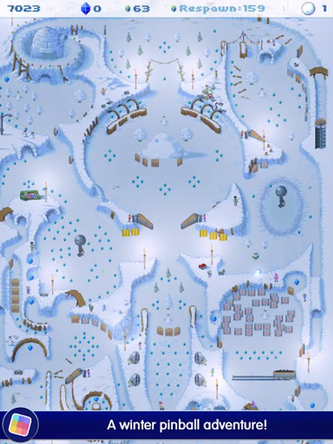 If all else fails, don't be afraid to give things a little nudge. Hit the snowmen and try to juggle multiple snowballs at once. Take advantage of the raw scoring power to drive your scores to whole new levels. Head to the mountain in the daytime or try the night course for a different perspective on the mountain. Search high and low for hidden secrets and grab gems wherever you find them in order to accumulate as many points as possible. Snowball is the coolest pinball game around!