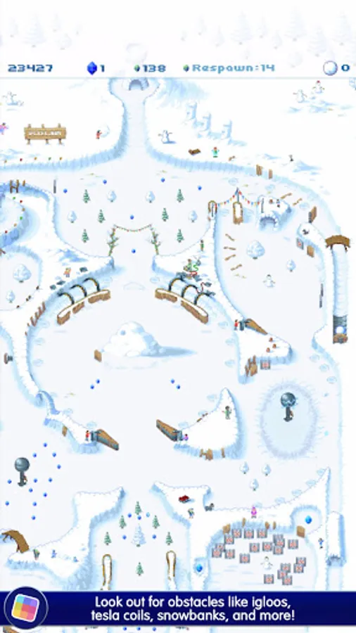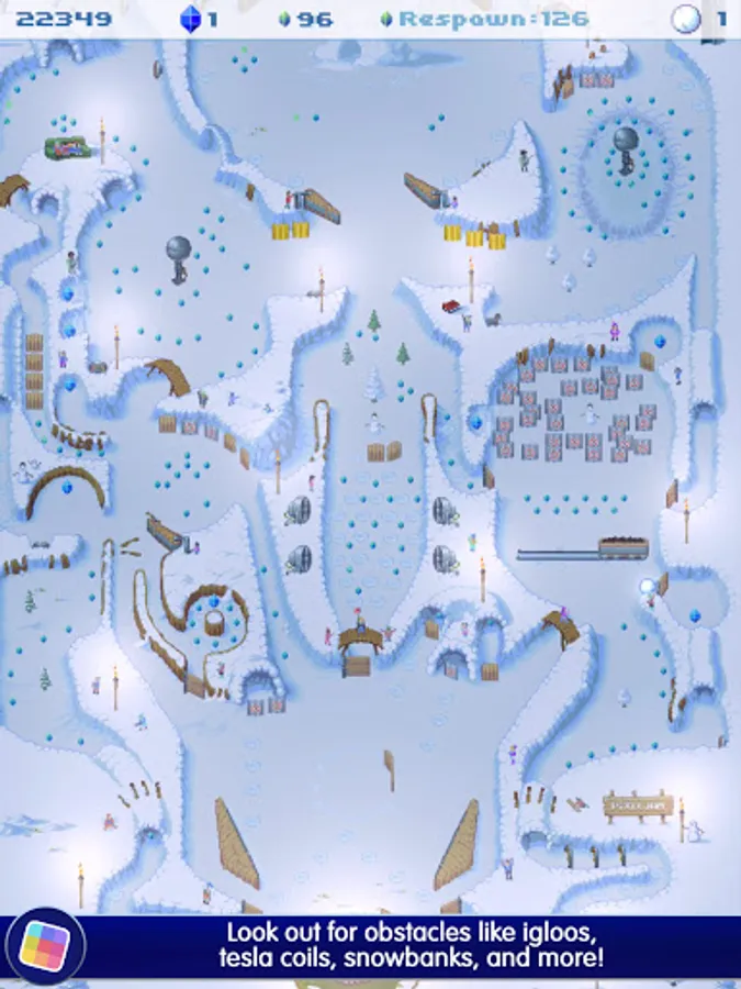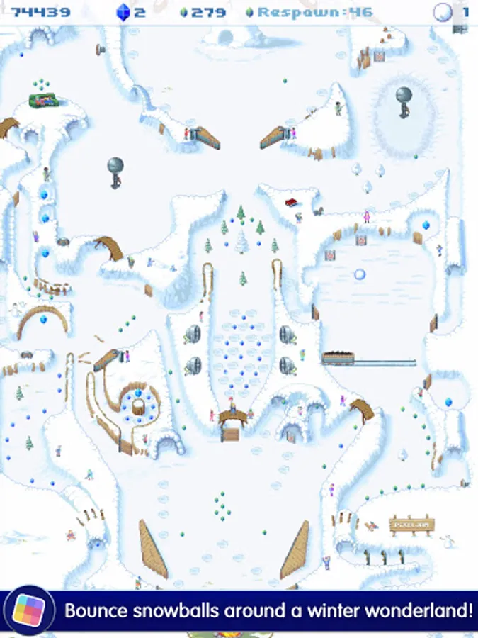 Intuitive Controls: Tap either side of the screen to activate the various flippers, springs, and platforms that keep your snowball moving. Activate the Tesla coils to really get things rolling!