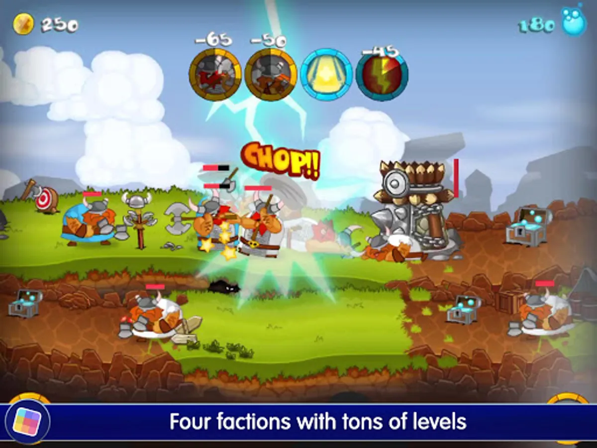 Intuitive Controls: A few simple taps and swipes is all that is needed to send your forces into battle or cast awe-inspiring magic spells!