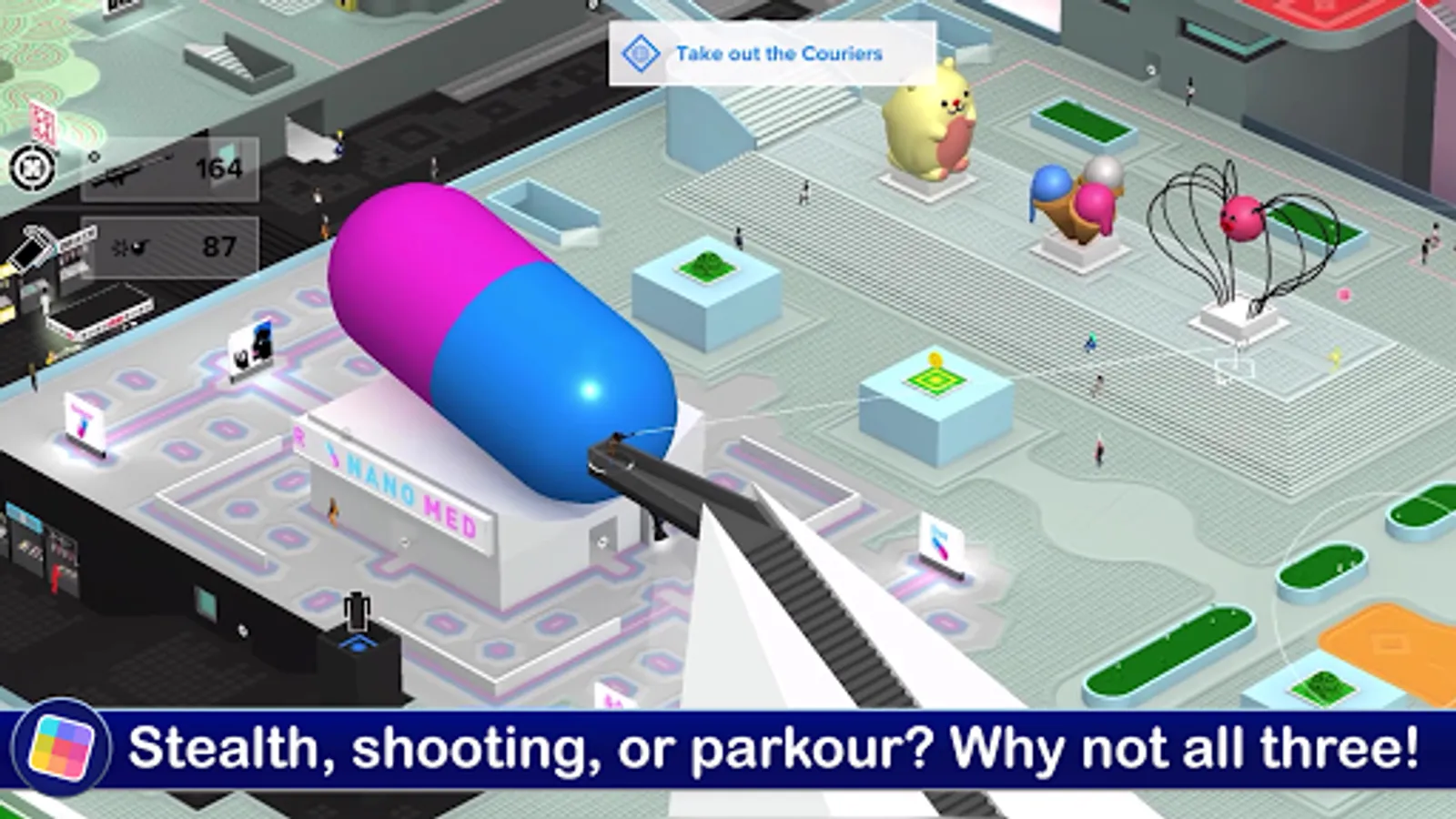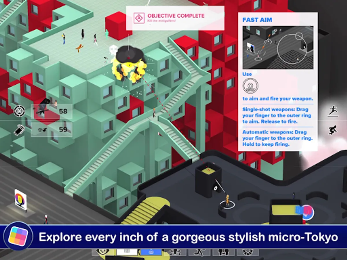 Skillful shooting, bullet physics, and sneaky stealth all play a role in the ultra-colorful kinetic frenzy. Spin the camera to see every angle of beautiful micro Tokyo and discover a huge range of weapons, secrets and stories. The city is your playground.