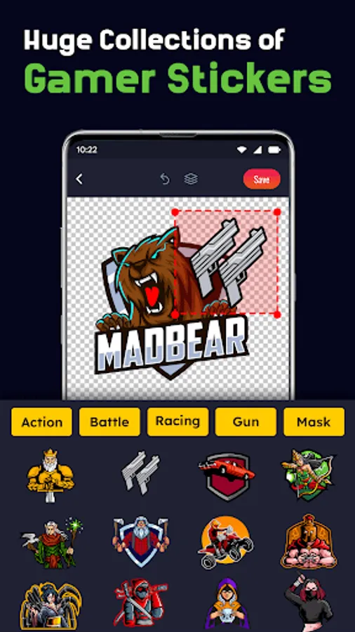 This pro gaming logo maker app also gives a huge collection of gaming stickers with a text background. You can also draw and write on the logo. With the effects features you can give the decorative look to the logo.