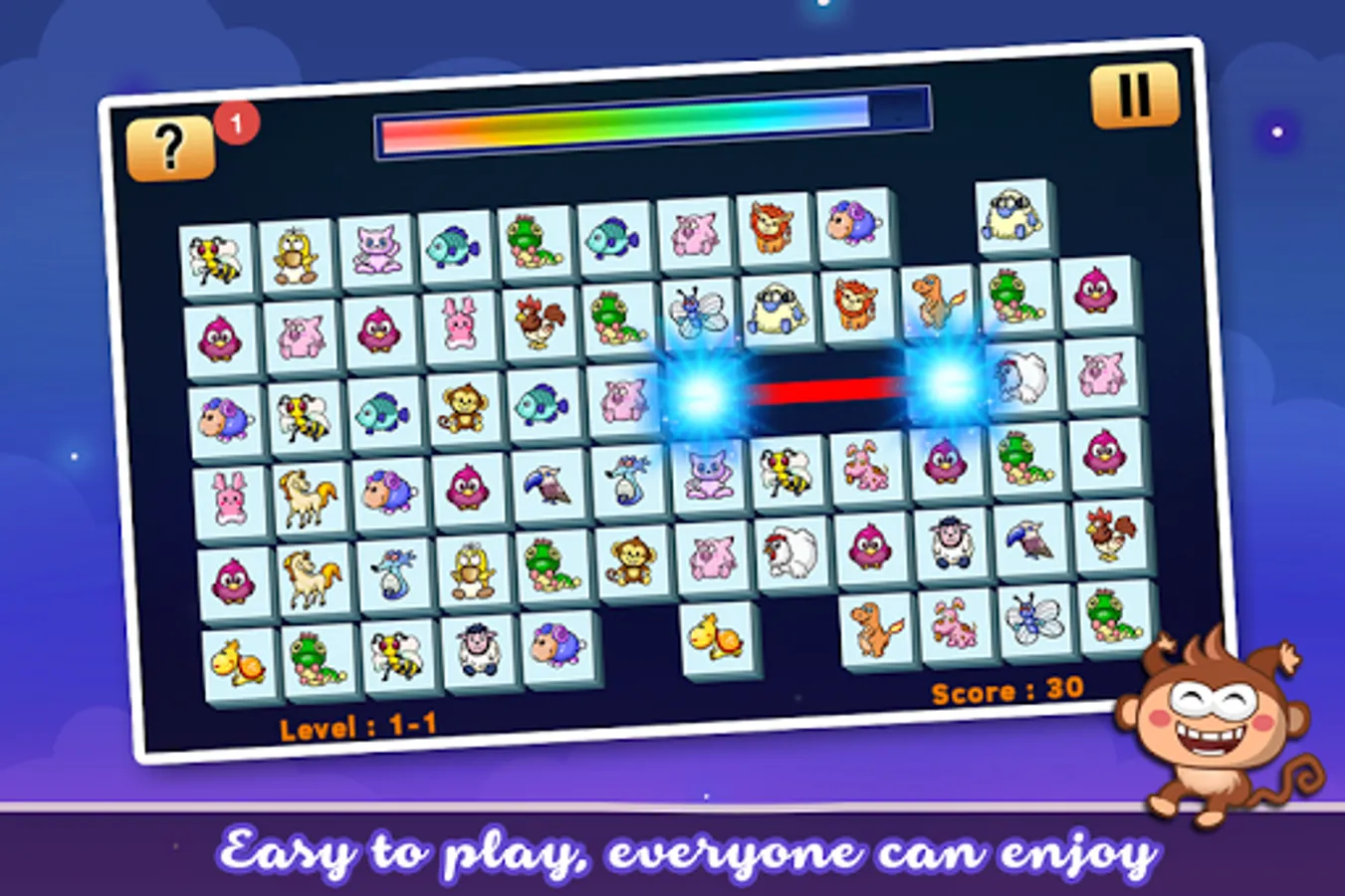Remove 2 animal with the same kind which can be connected within 3 lines.