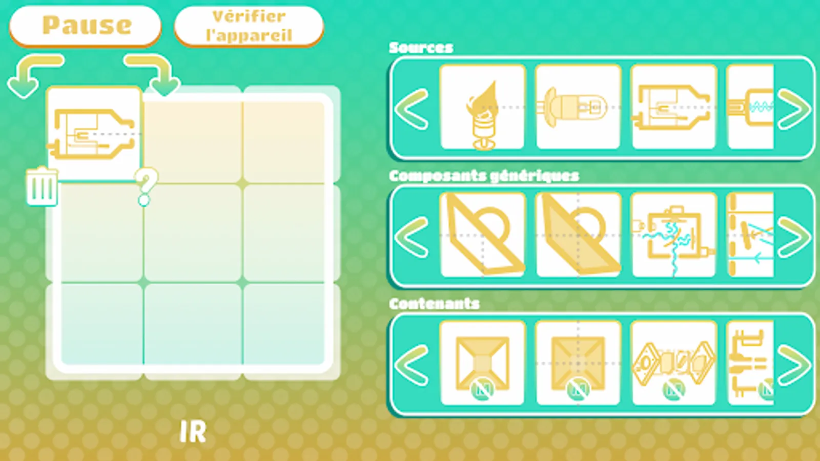 Build light measurement systems by assembling different parts together in order to reproduce real-life experimentation instruments. Monochromator, pyroelectric crystal, photomultiplicator… Will you use them well and conduct a successful experiment?