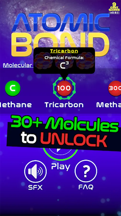 Collect all the elements required for 30 unique molecules such as Vitamin C, Dynamite, Glucose, Methane, and more! Learn a little bit of science along the way.