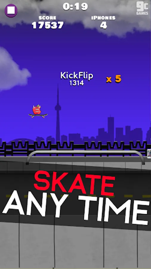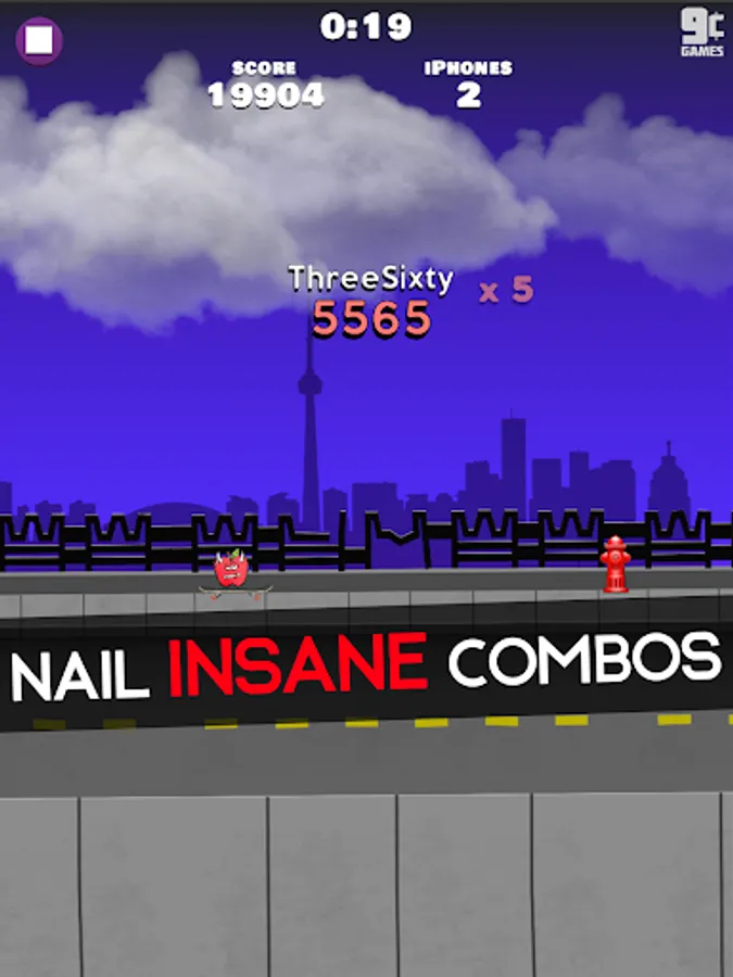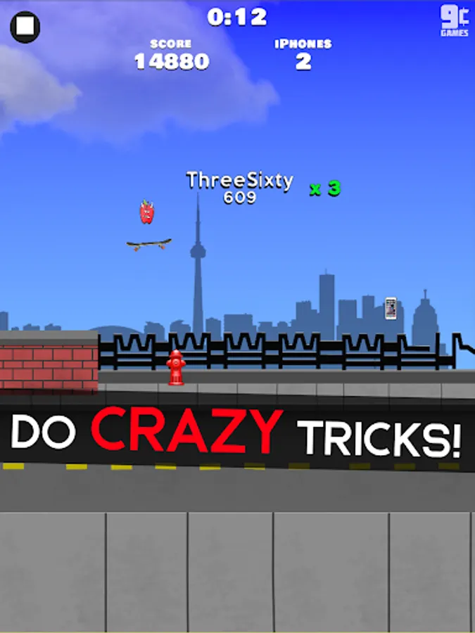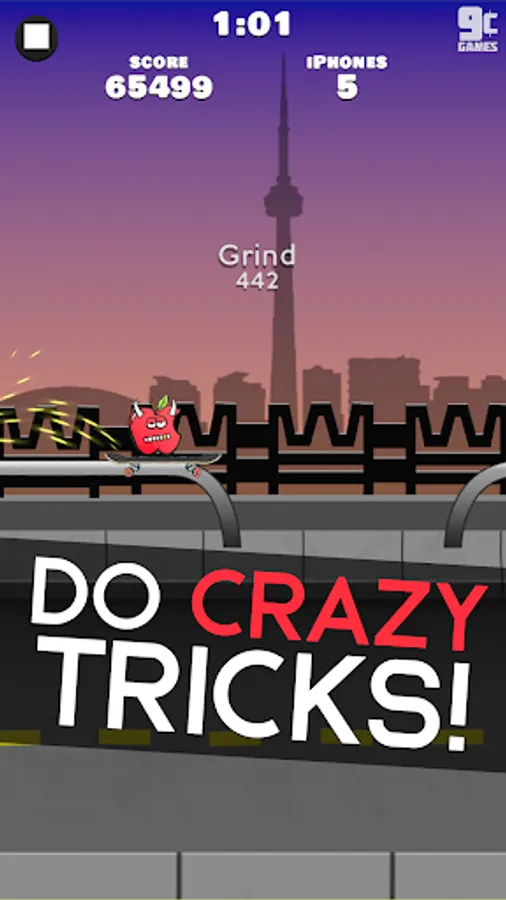A crazy endless side scrolling game where you play as the baddest apple in town. Thrashing up the streets by catching insane air and throwin' down crazy combos! Link together technical moves like kick flips, grinds, 360s and more! Watch for barriers and those raggedy old granny's trying to knock you down!