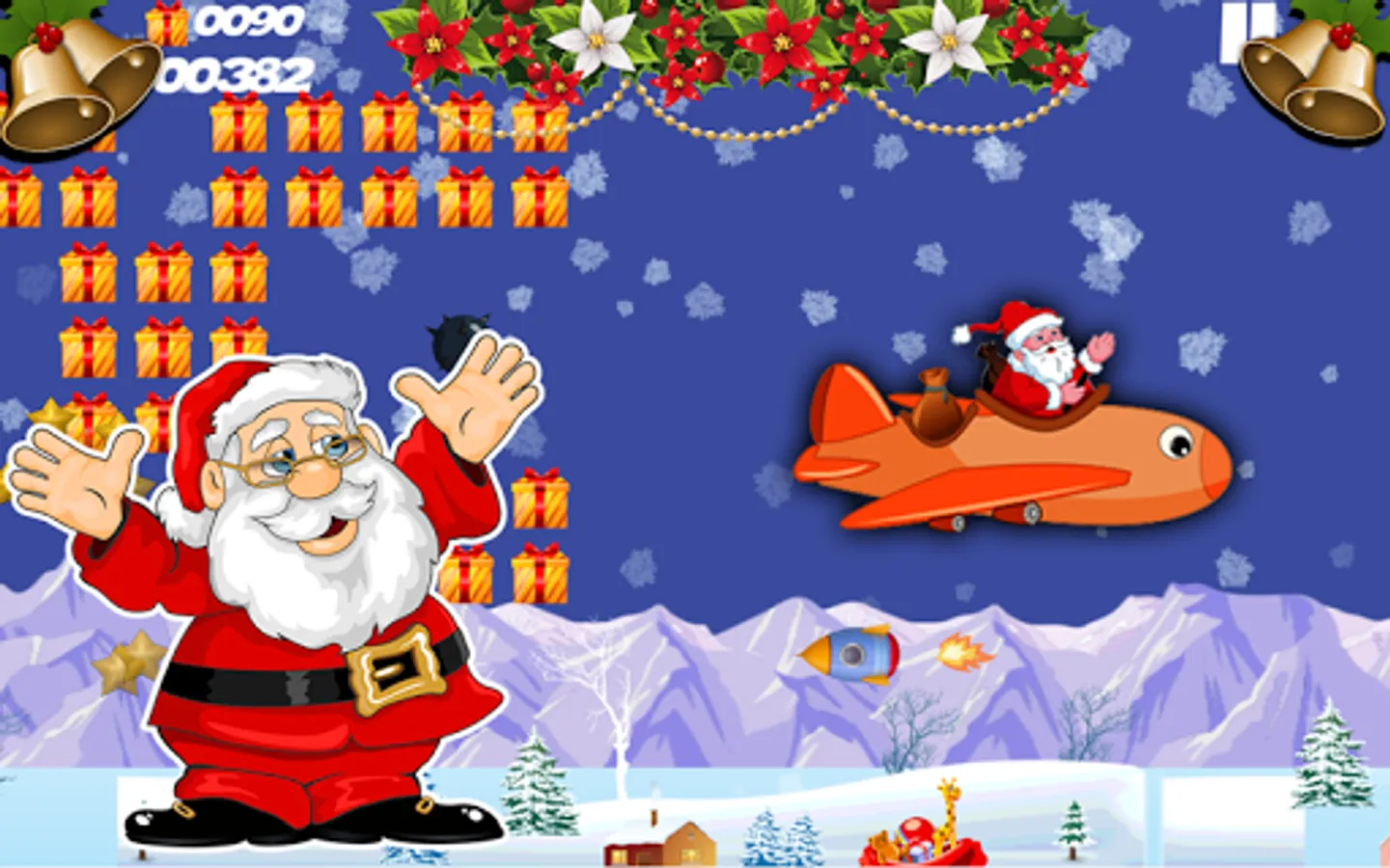 This Christmas Santa is flying to drop the gifts for all. Santa must not collide with obstacles otherwise santa will not be able to give gifts this christmas. Help Santa fly in flying through blue sky. Flying Santa is the adventrous endless game.
