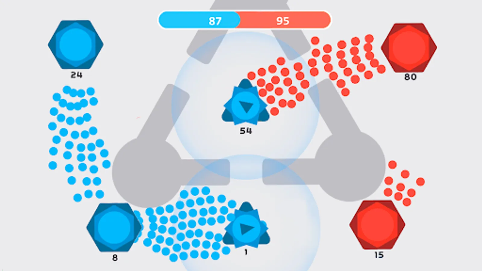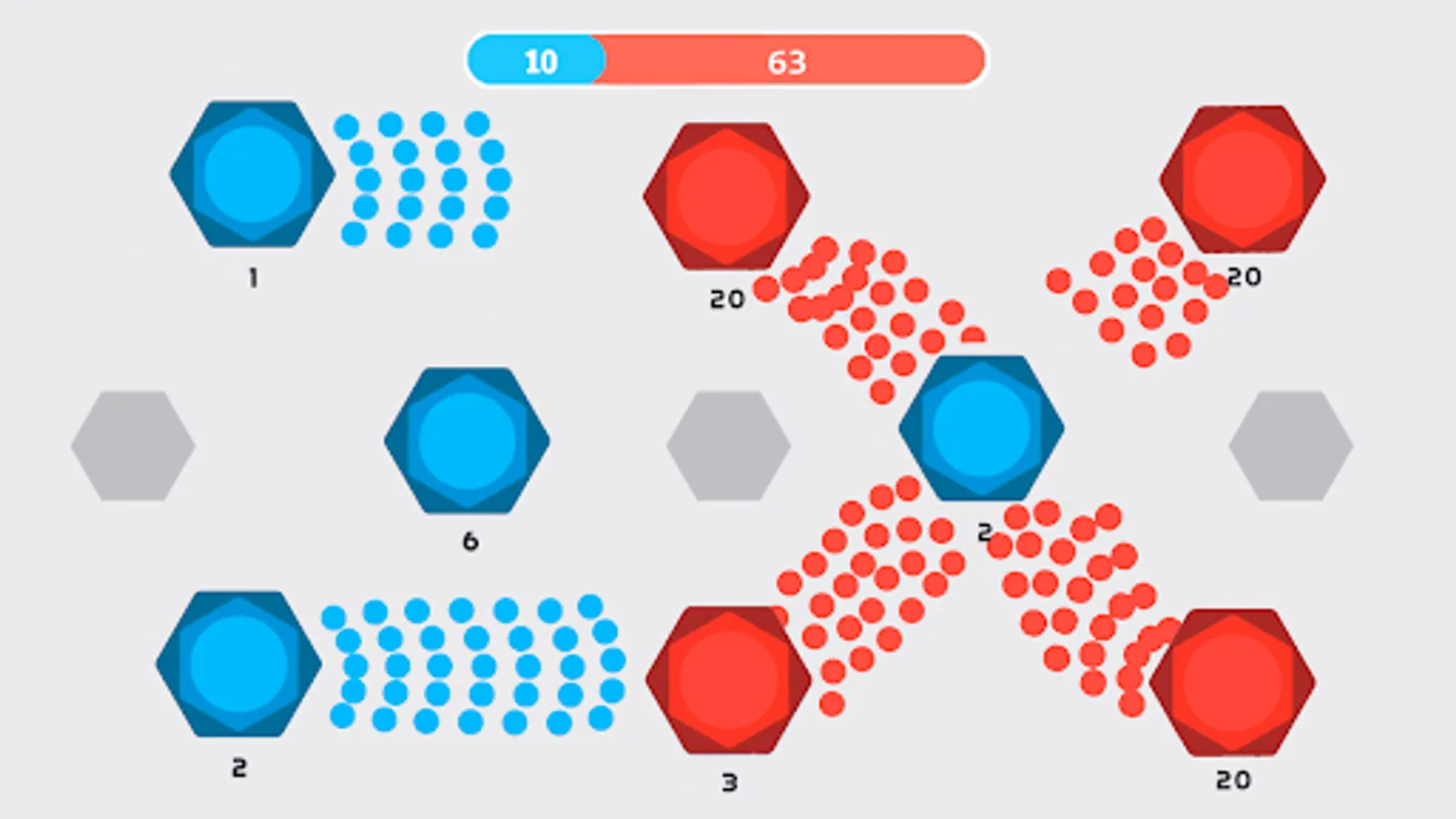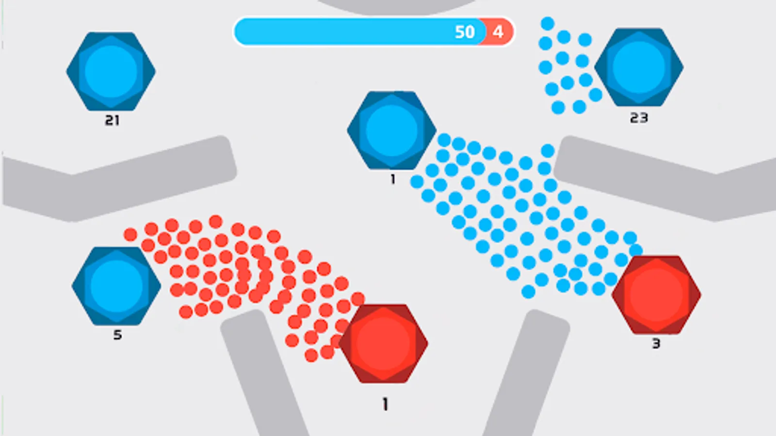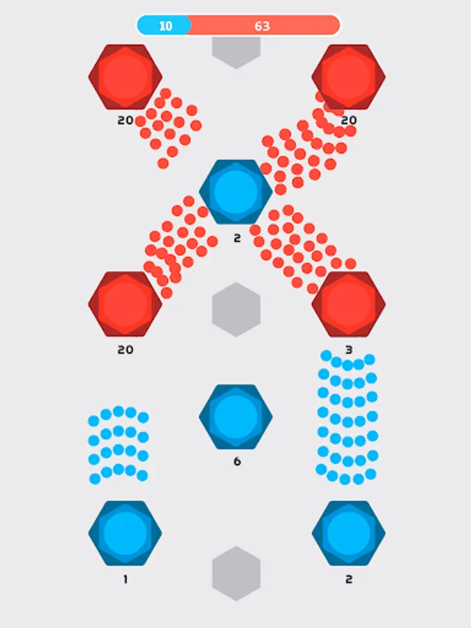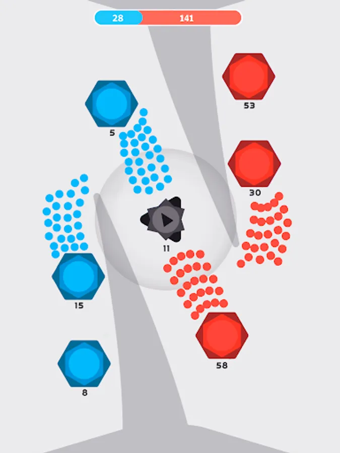 Start a level with launching a full-scale attack or provoke your enemy to waste cells by making the first move. Defend your dots & fight back to take control of the exhausted cells. There are numerous ways to win in this minimalistic strategy game.