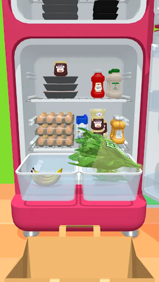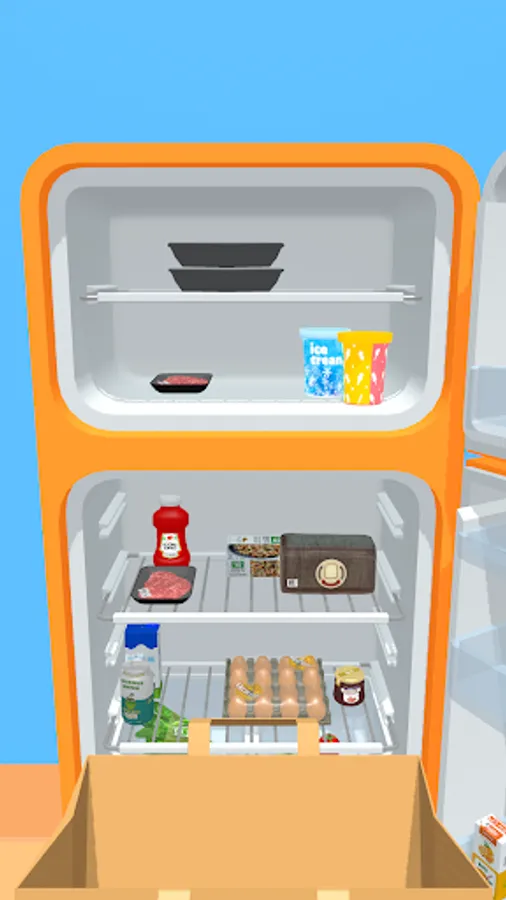 click on the item and drag it to the fridge to place it, drag the item to the side of the screen to place it on the fridge door, drag the item to the top of the screen to place your purchase in the freezer.