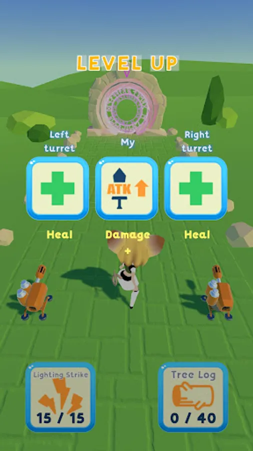 Pick one of the upgrades after each level to upgrade yourself and your turrets