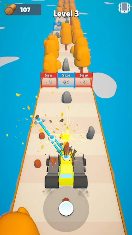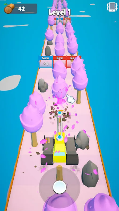 Gather logs with your saw, upgrade the machine and avoid danger. Collect as much log as possible and build stuff!
