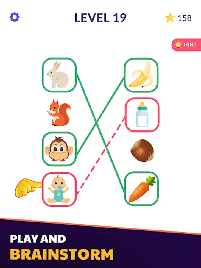 Hints are available to help solve in the puzzle matching games. You tap on the hint button and line guide available to help you for correct answer. But, you must have sufficient star for it.