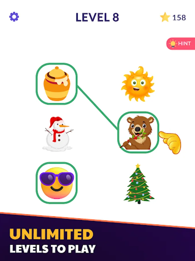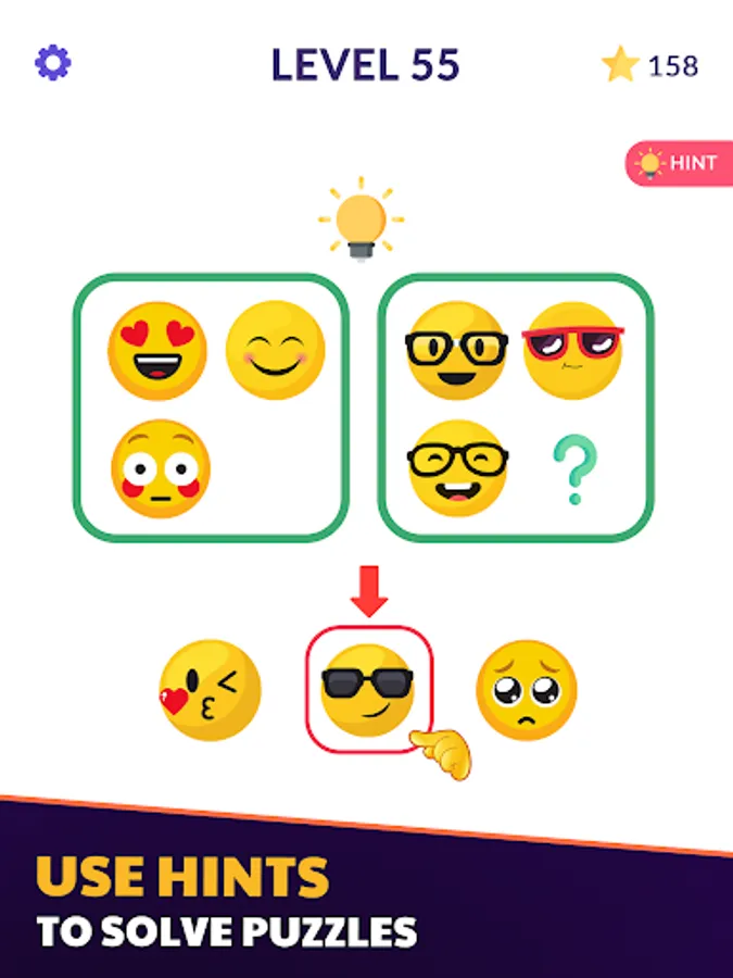 Fun guessing matching games and connecting emoji levels are a lot of fun and sort of find the emoji and pair matching game or puzzle game. You have to match the right emoji with the other to complete guessing game level.
