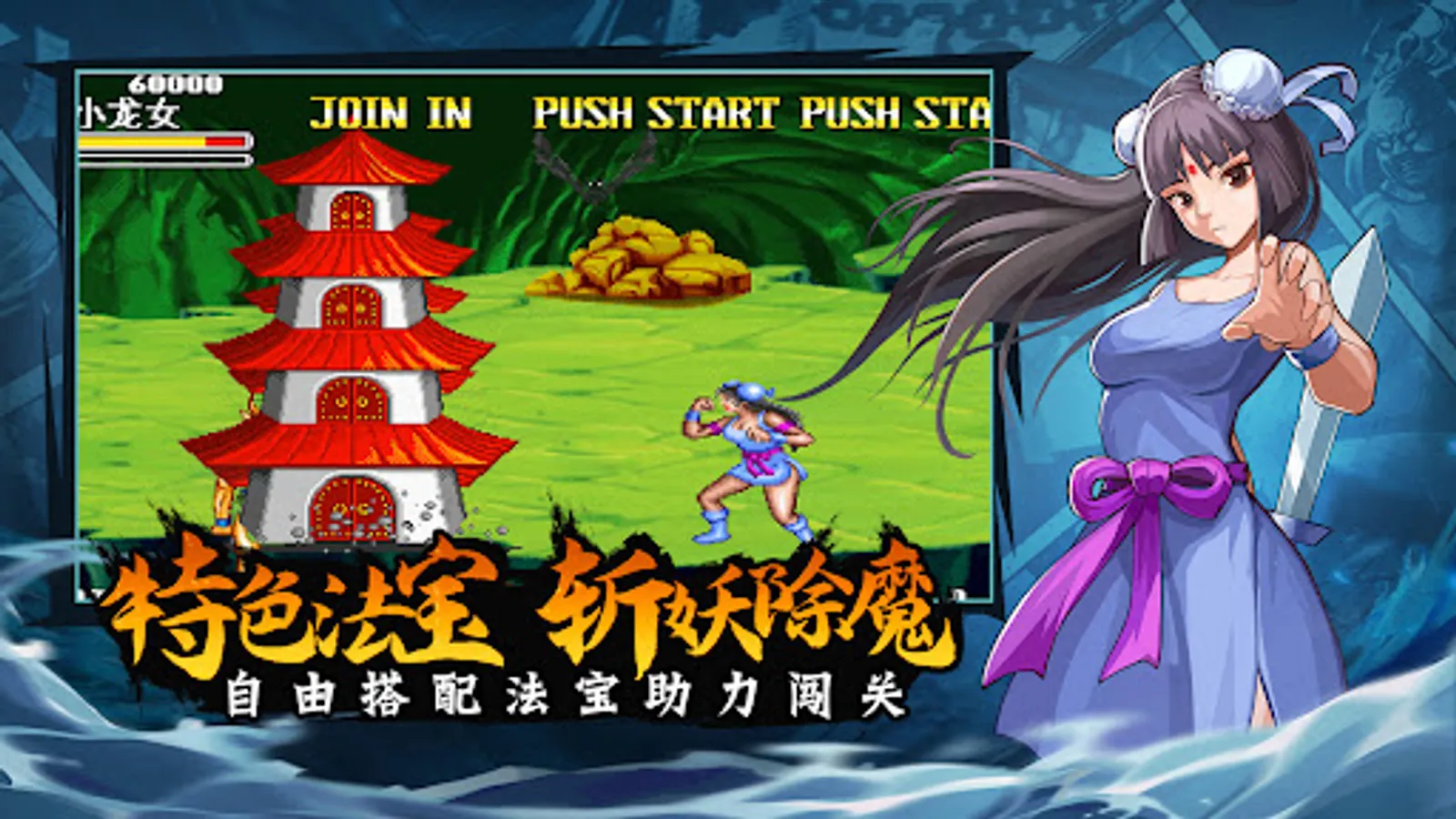 "Journey to the West" is a side-scrolling action game. The game restores the characteristic elements of characters, scenes and battles in the arcade version. At the same time, it adds the interesting gameplay of the five elements. Players can match different hero combinations through attributes. To challenge the corresponding copy. At the same time, the five-element defense mechanism in the game emphasizes the relationship between different attributes, allowing players to be more strategic in battle.