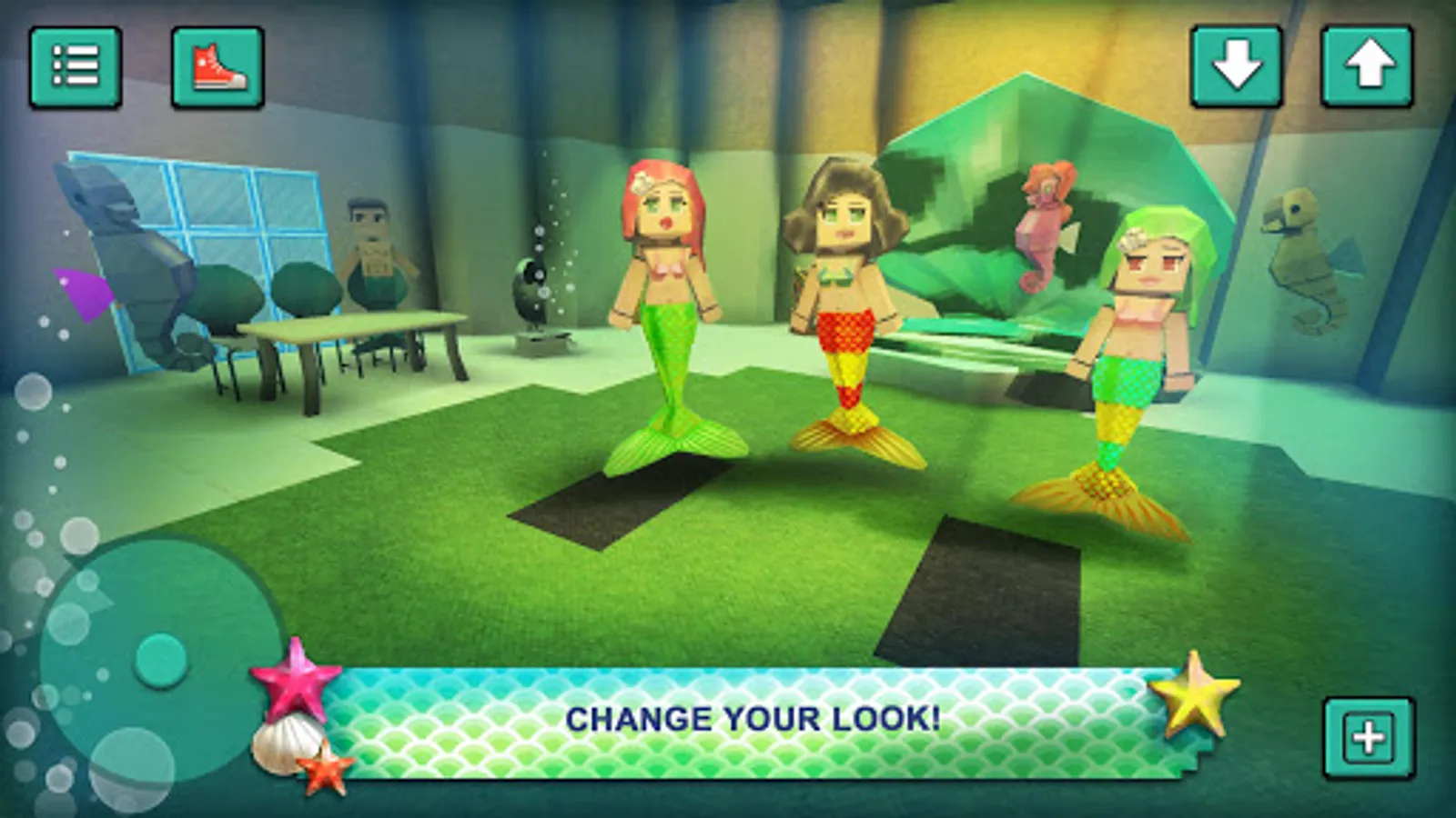 Dive under waters of a deep blue sea for a blocky cube exploration adventure! Become a mermaid - a princess of the sea - and rule the underwater ocean world! Change clothes and visit a mermaid hair salon to look like a queen. Mermaid Craft is one of the best new mermaid dress up & fashion games!