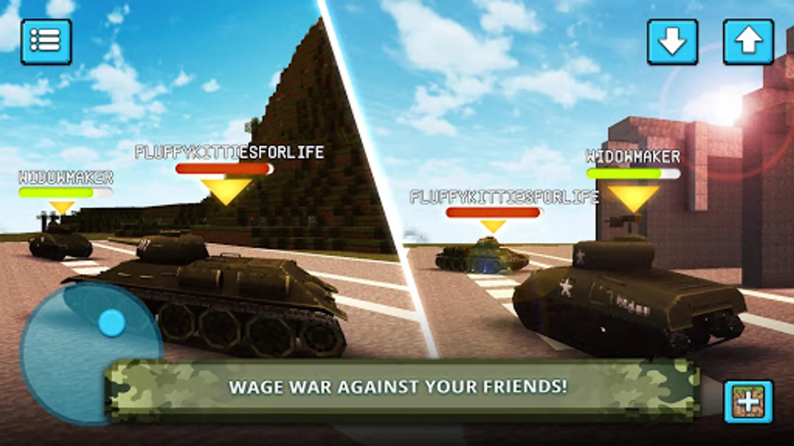 Nothing taste better than victory in multiplayer war games and it’s especially true in Multi Tank Craft! Beat enemies in PvP or Team Deathmatch modes, train yourself in a Survival Multiplayer mode, gain experience and top the world rankings! Unlock new tanks, ammo and many more items, that will make you even more versatile on a blocky battlefield! Become great army commander like the best generals of World War II and fight against the best players in the seasonal online tournaments! Tank assault was never so fun and rewarding!
