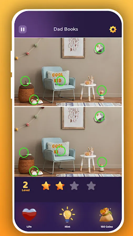 πHappy Rewards: When you locate objects or images in a respectable amount of time, Find the Difference rewards you with a coin.