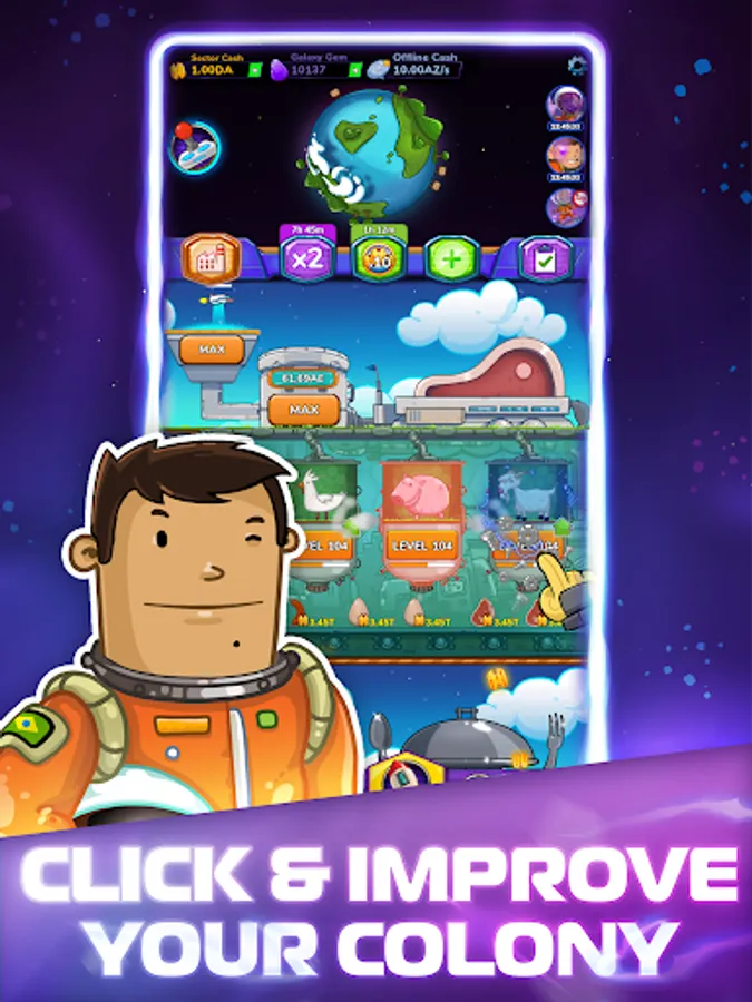 Endless Colonies is an empty space simulator game where you can progress step by step with the clicker mechanism. The aim of this empty space simulator game is to explore new planets, build new factories and create a space empire! Become the number one millionaire king of the entire universe! Invest to become the biggest adventurous company on the planet!