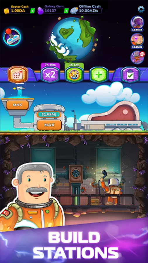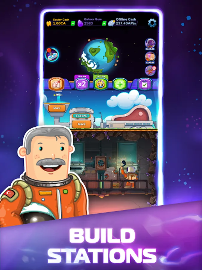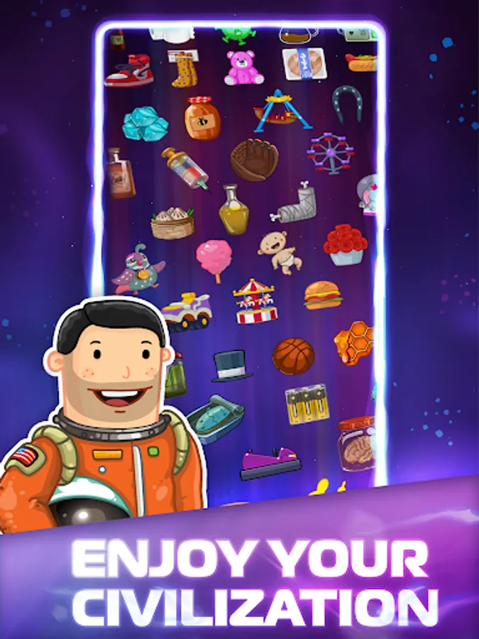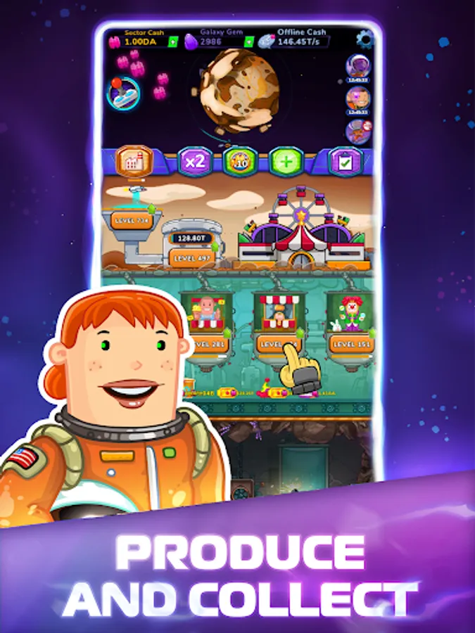 Prepare to deploy your spaceship! Explore new sectors and find new home planets to live in! Collect rewards, activate power-ups to grow fast! Become a good miner. NASA will be watching you! You will experience a completely different tap game mechanic at every level.