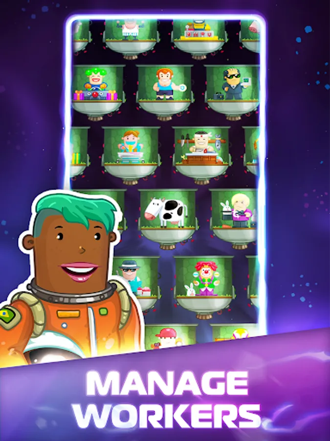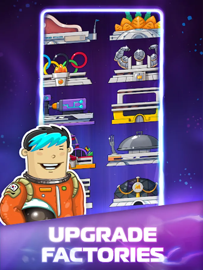 Unlike other idle games, you have the chance to develop your own strategy to manage your factories, products and workers! Power up your ships and let your workers produce hundreds of items to fill the factories' mine warehouse! Profit, upgrade and grow your employees! Earn gold!
