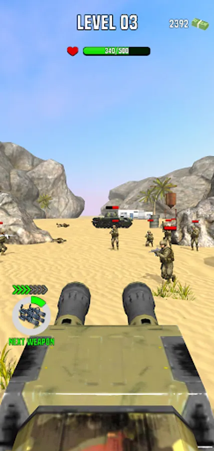 Fight against soldiers, tanks, helicopters, aircrafts....