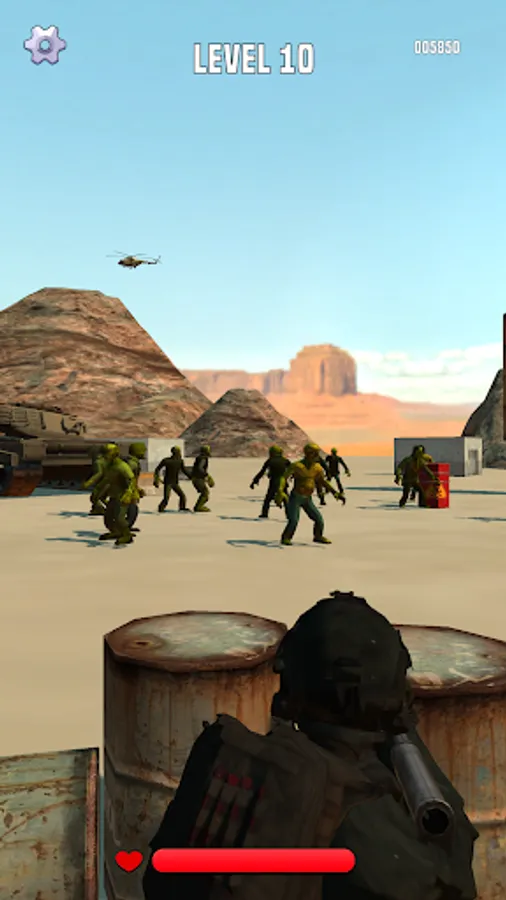 Ready to take on a zombie horde all alone? Take them all out before they reach you. Use the explosive barrels to your advantage. Hey there, zombie beasties, come get your shots!