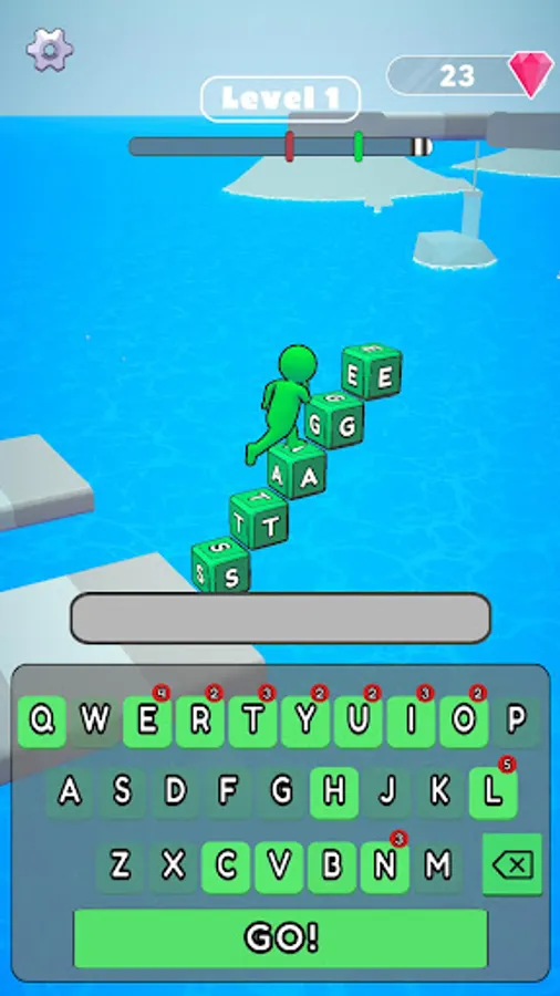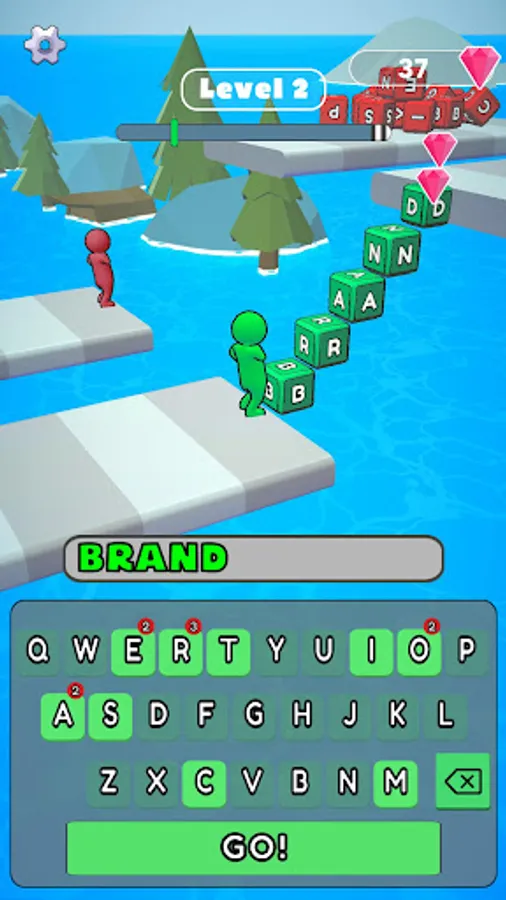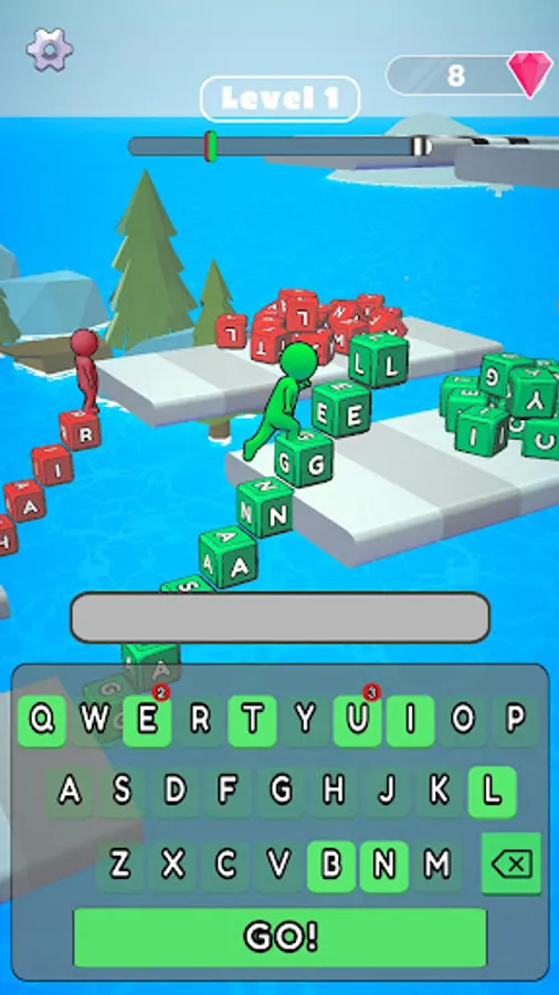 Collect letters and use them to to grow word-stairs and word-bridges in front of you. The faster you type, the faster you go! Can you win the word duel?
