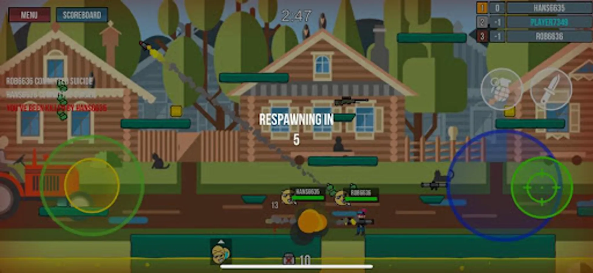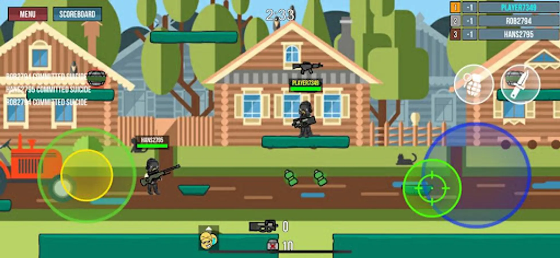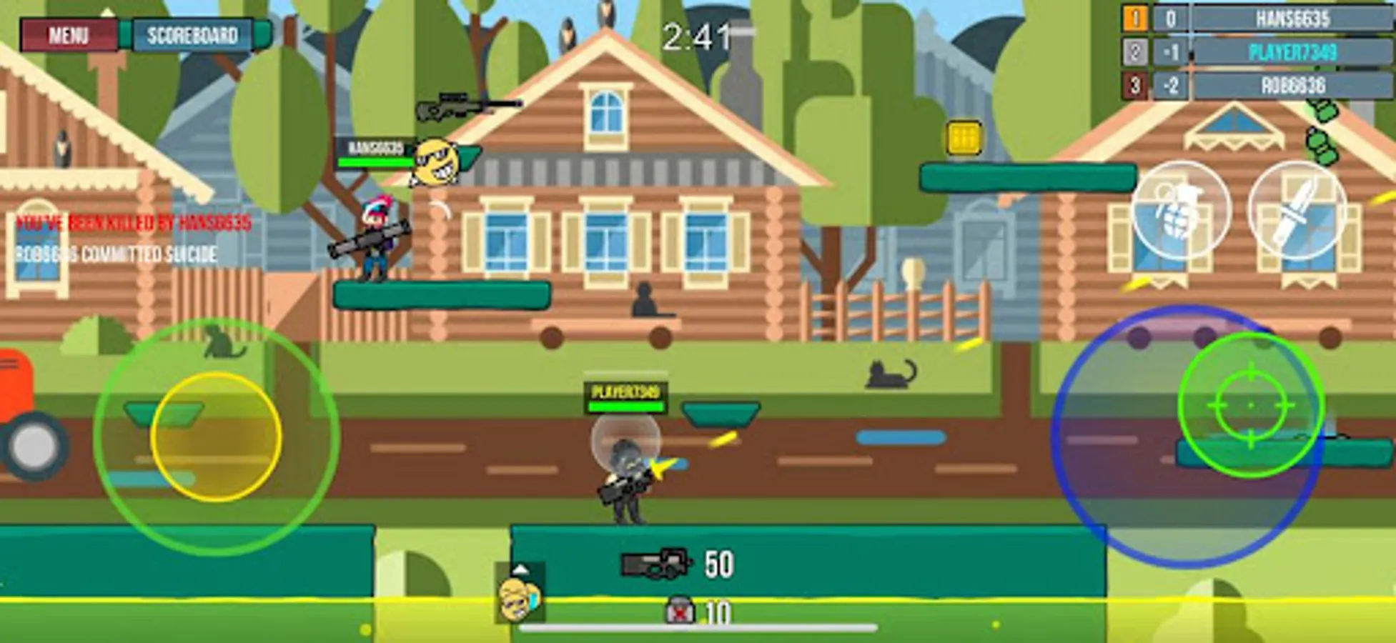 Cut'em down or light'em up; challenge friends and strangers to fun online multiplayer platform combat! An exciting 2D battler / shooter with upgradable characters. Grenades, guns, rocket launchers, and knives; this game will keep friends and foes alike under-fire in this military-themed world-competition.