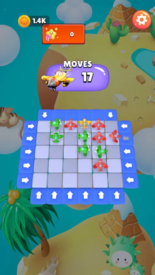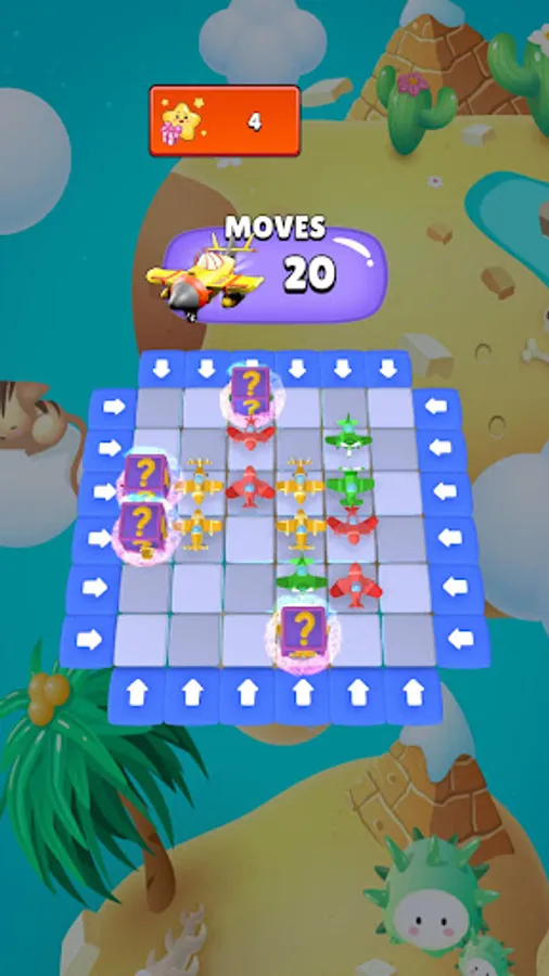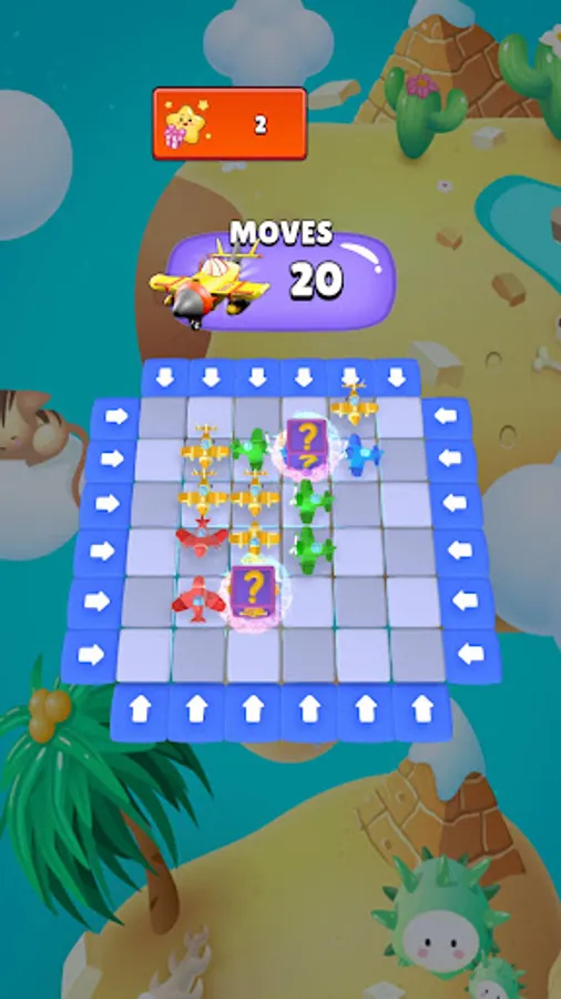 In Air Traffic Puzzle, you are tasked with guiding a fleet of planes through a dynamic game board filled with various obstacles. Your objective is to clear the board by strategically directing each plane to its designated destination, while trying to avoid blockades.