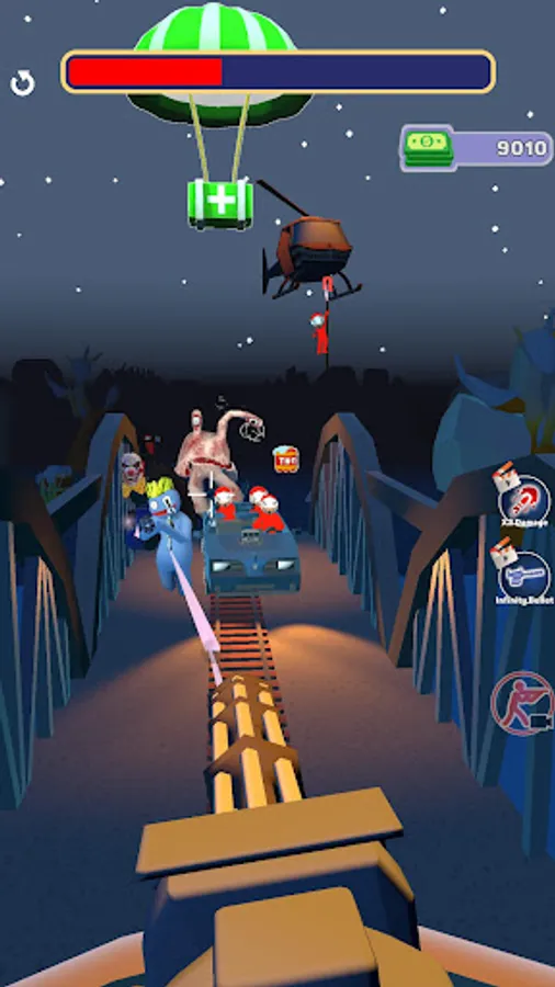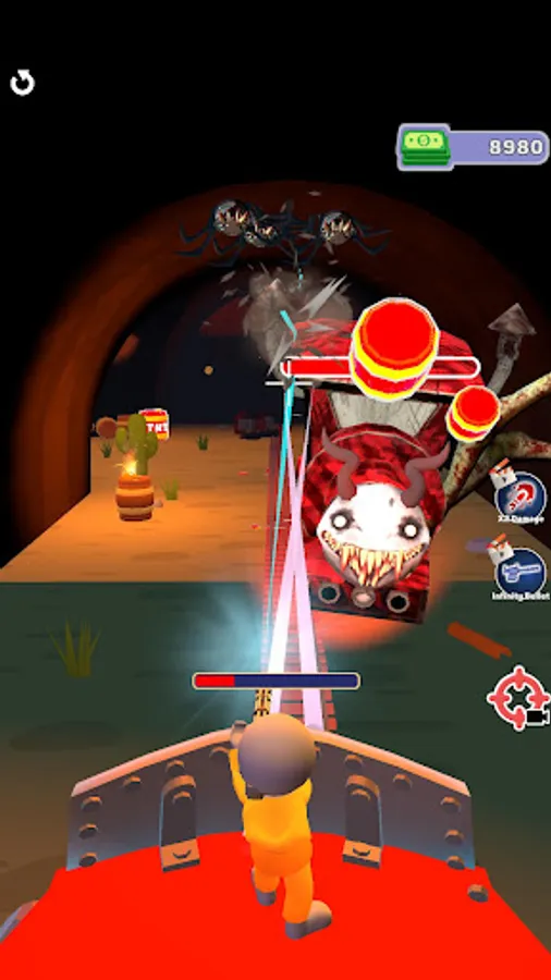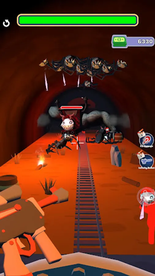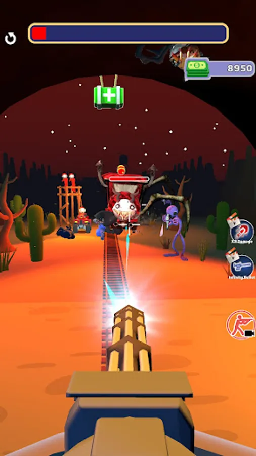 A scary train is chasing you!!! Shoot him! Escape from different boss battles or upgrade your weapons and demolish them! Be careful they have many friends along the way.