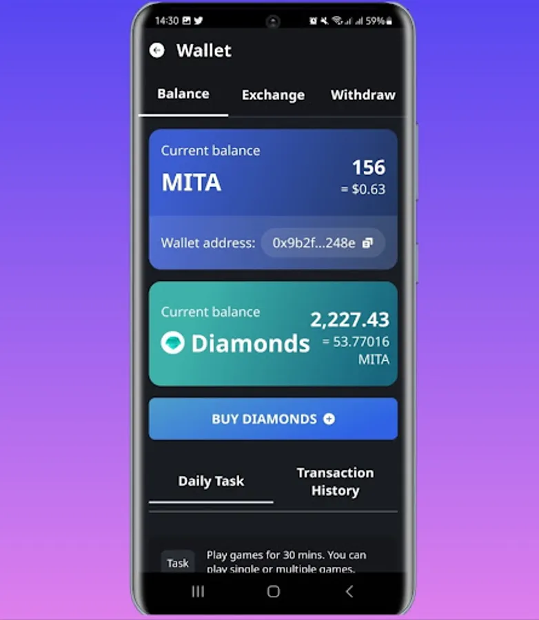 MITA is your gateway to a captivating social gaming lifestyle, offering endless opportunities to earn while you play. With MITA's all-in-one app, you can explore, go live, socialize, and play a wide range of interesting games. Connect with friends, chat, share your exciting moments, and get rewarded with diamonds and crypto tokens that can be converted. Dive into the MITA experience and rediscover the joy of playing.