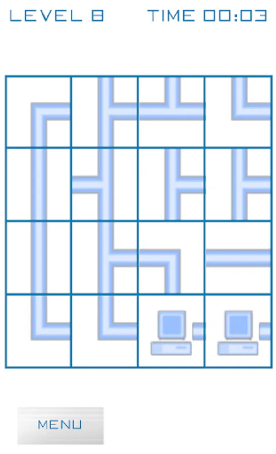 Classic addictive puzzle game to train your brain. Your task is to unscramble the network. You have a network of computers that has been scrambled, rotate the squares such that every computer is connected to every other computer and every square is in the network.
