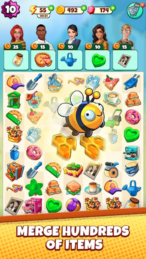 Merge items in exciting, addicting gameplay that keeps you coming back for more. Discover new types of plant, coffees, pies and objects as you progress through our unique match-2 game mechanic. Each match takes you closer to unlocking charming decorations and tools to spruce up your backyard.