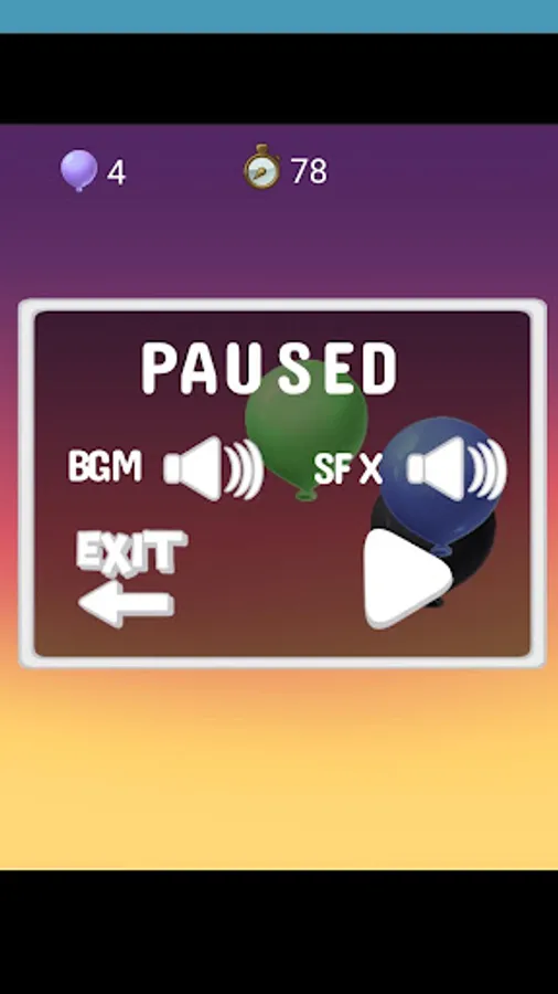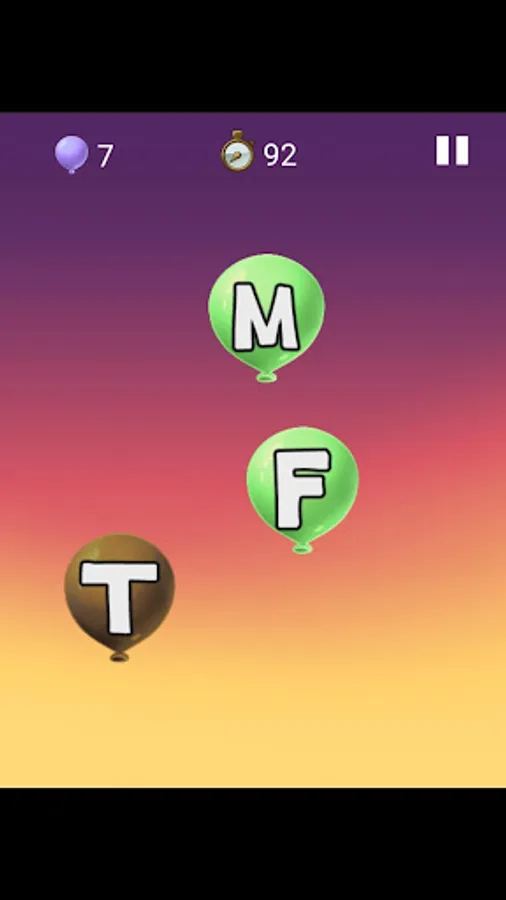 Each balloon popped is described audibly in English by a clear human voice actress.