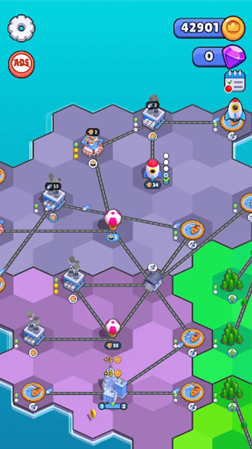 📍 DISCOVER NEW LANDS: Once you’ve opened every hex in an area, you’ll need to save up coins to unlock the next area. Who knows what resources you’ll find when you discover new lands?