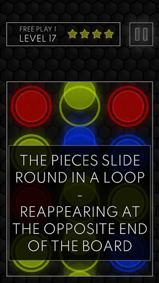 Slydr works a bit like a 2D Rubik’s Cube, where the game pieces rotate around infinitely - if you slide a disc off to the left, it immediately appears from the right; when you push one out at the top, it comes back in from the bottom, and so on.