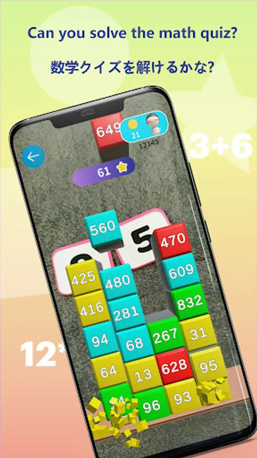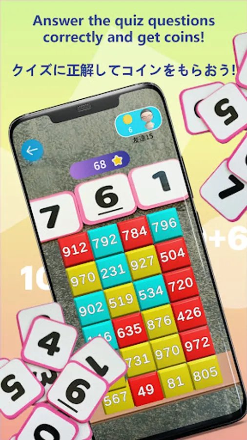 Move the number pieces by hand to answer the questions and destroy the blocks that fall one after another! If you answer one, all blocks of the same color will be destroyed! Do you want to put it in the ranking aiming for a high score?