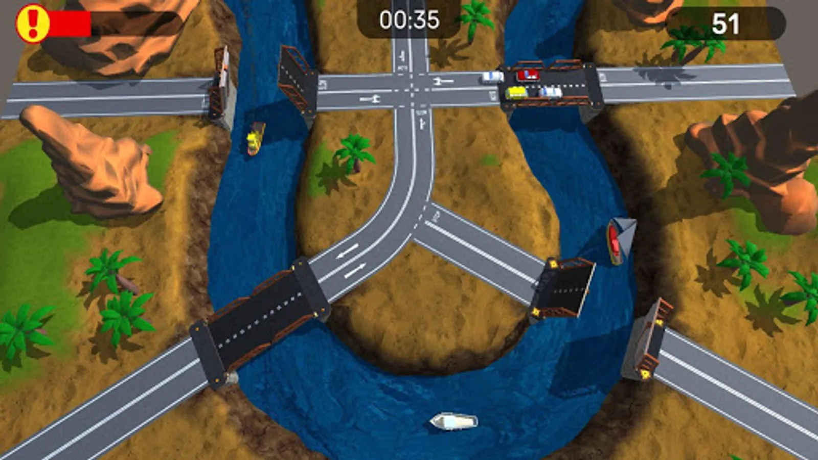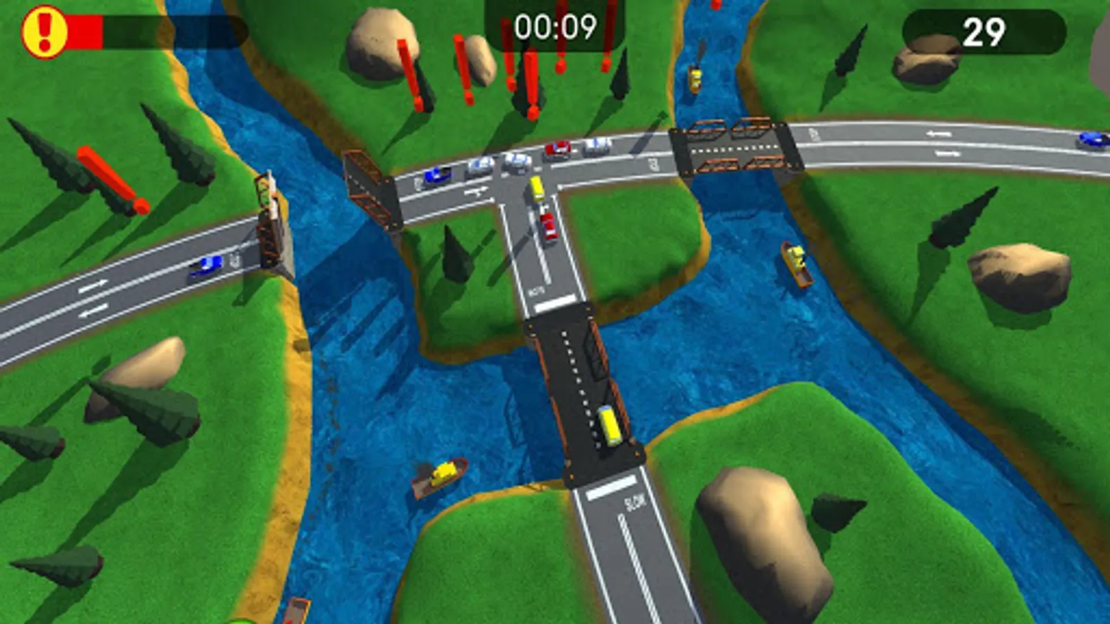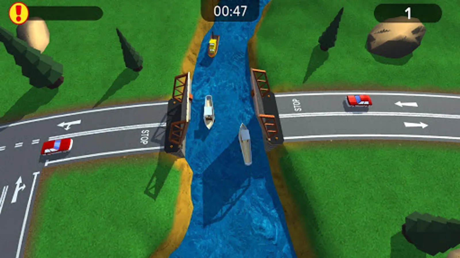 Show your speed, attention and calculation. Success in this simple but interesting game depends on them. You decide how much time the drivers spend on the road. You do not want to create a traffic jam for them, right? By controlling the drawbridges you decide who can now continue moving - a boat on the south or a family pickup on the east.