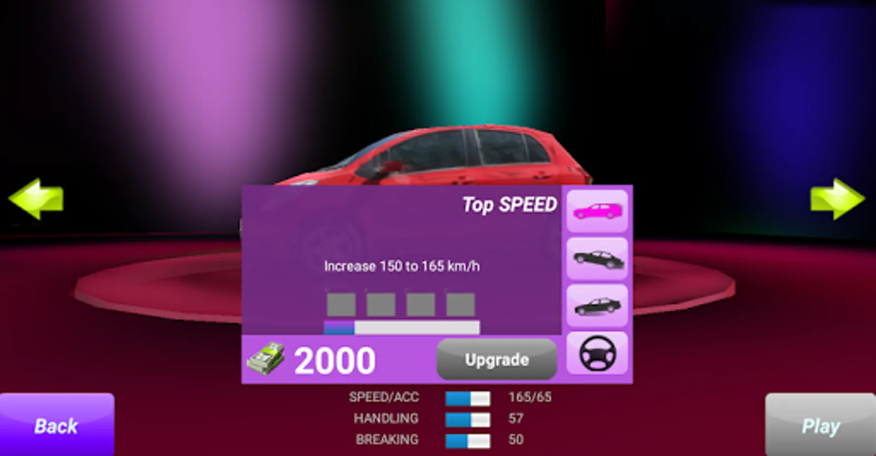 Enjoy car driving in car. Avoid traffic accidents. Follow speed limitations. Upgrade Your car to achieve better perfomance.