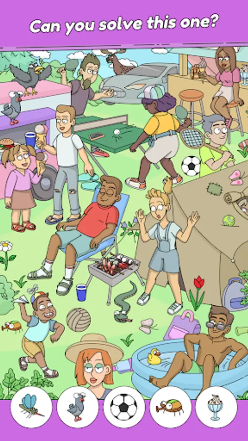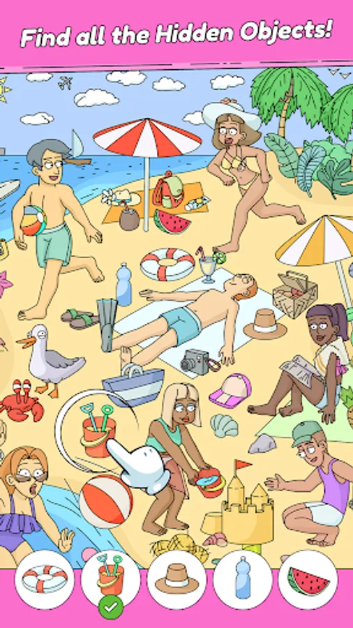 Find & Tap is a fun, free, one-of-a-kind hidden objects game. You need to find objects in the hand-drawn pictures. The game is set in various locations, from the beach to a dog show and a secret laboratory! Explore dozens of unique places and search for hundreds of hidden objects. The different tasks in the levels are a real challenge for lovers of the hidden objects genre! You'll have to work hard to find everything we've hidden.