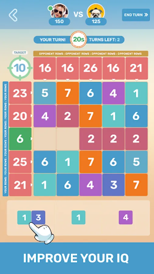 - You collect the target amount in rows and your opponent in columns!